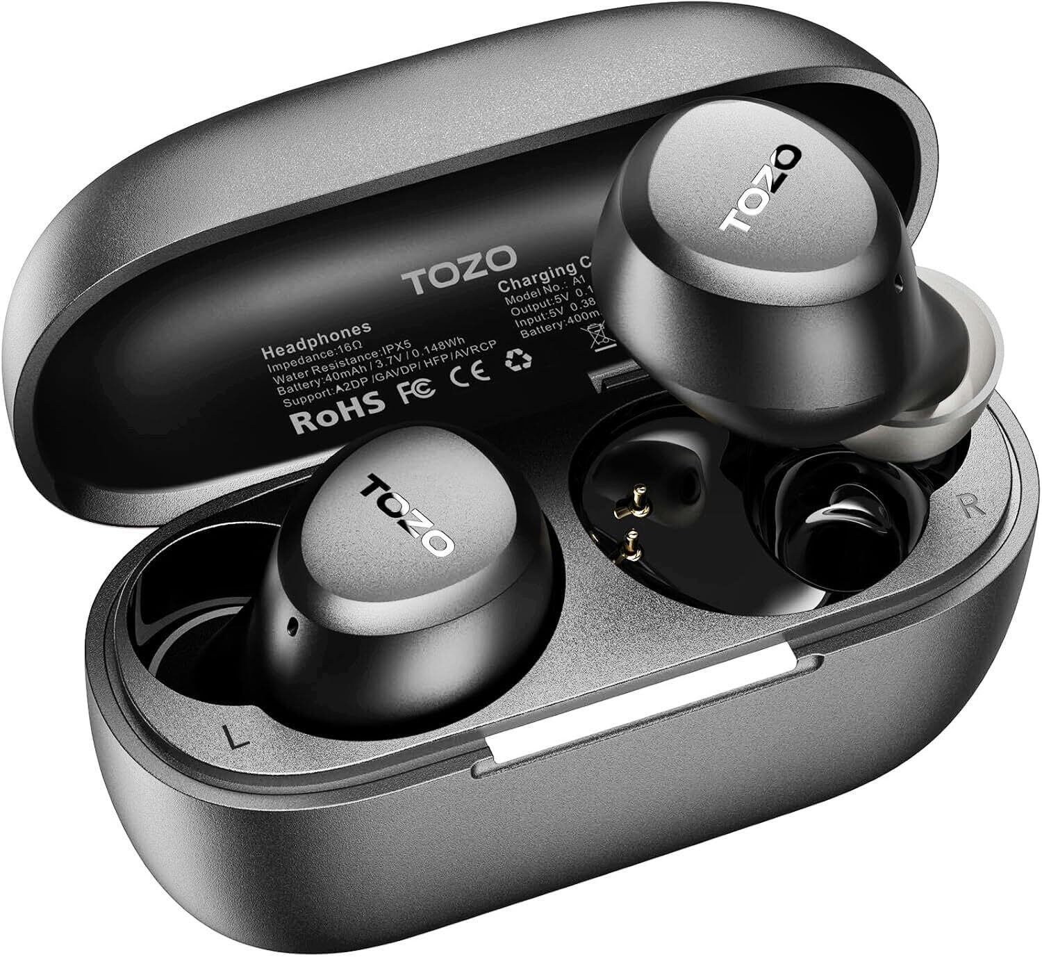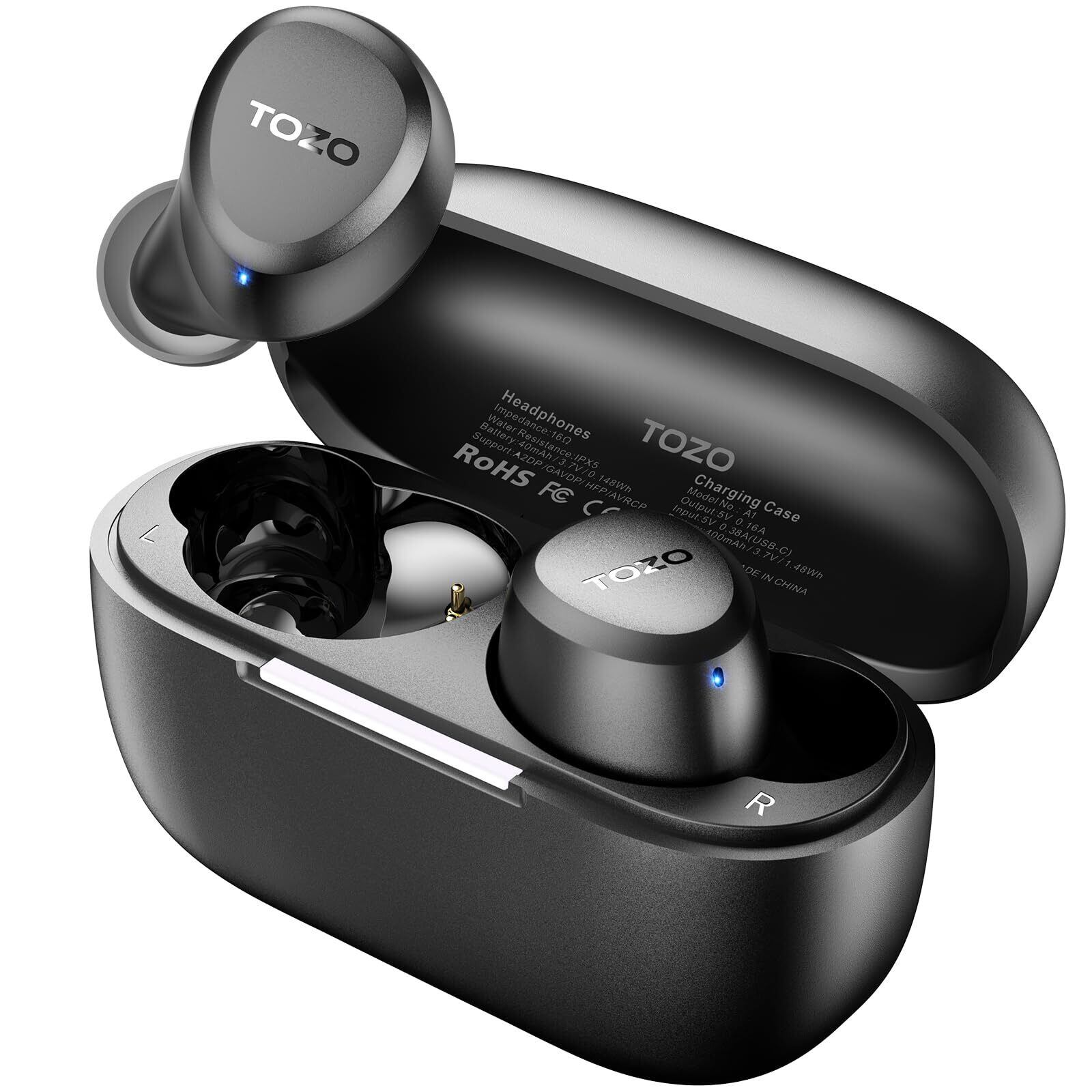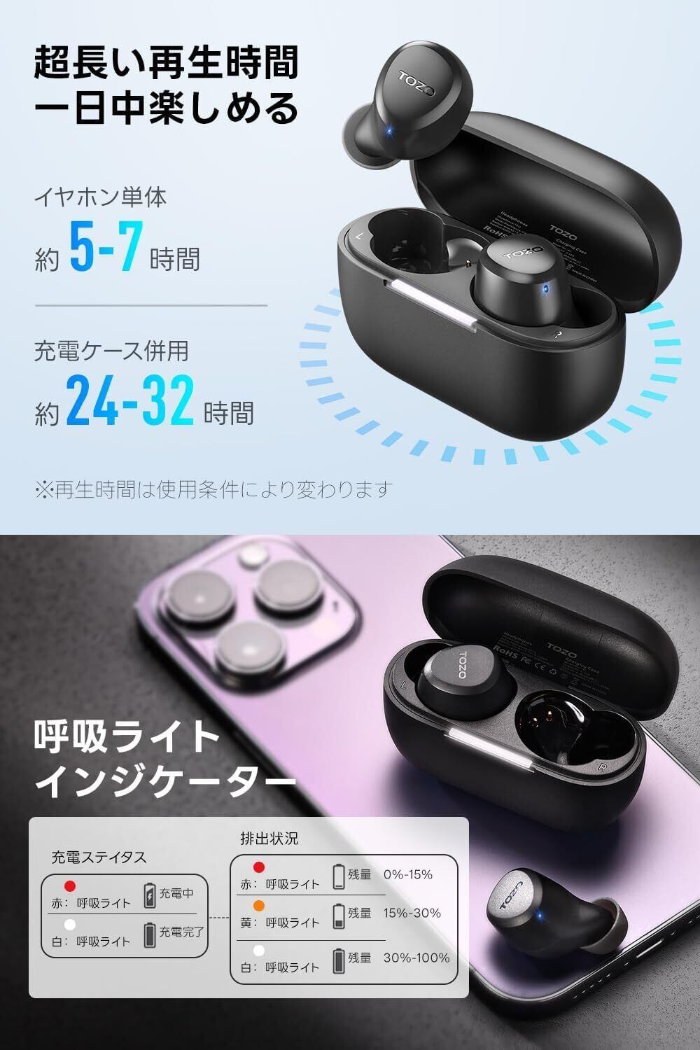 TOZO A1 イヤホン bluetooth ワイヤレスイヤホン 中低音域 暖色系音質 小型 軽量 快適 マイク内蔵 AI 通話時ノイズリダクション カスタムEQ アプリ対応 防水防汗 最大約32時間の連続再生 ぶるーとゅーす イヤフォン USB-C充電 カナル型 スポーツ/通勤/通学/WEB会議(ブラック | kki