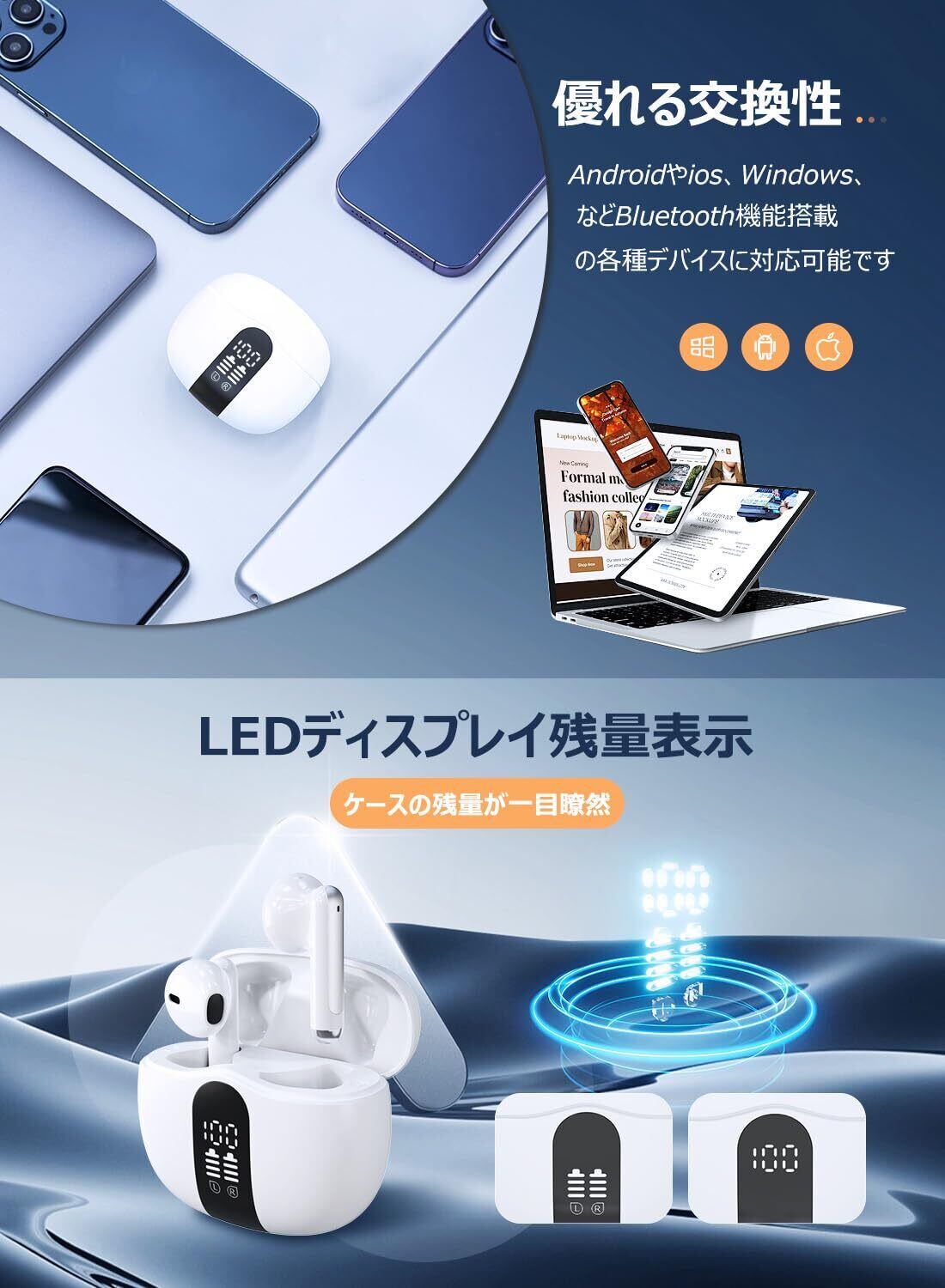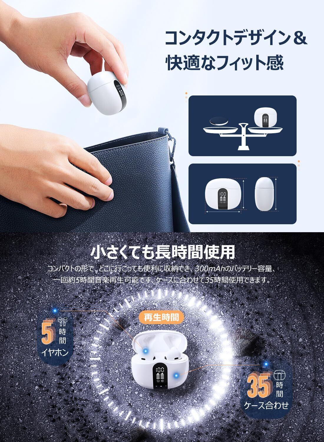 【音質究極版 透き通った音・ 広がる音場】ワイヤレスイヤホン bluetooth イヤホン Bluetooth5.4 イヤフォン AAC hi-fi音質 LEDディスプレイ EDR ダブルマイク ENCノイズキャンセリ CVC8.0 ハンズフリー通話 ブルートゥース 無線 小型 iPhone/Android適用 ビジネス/WEB会議/通勤/通学/スポーツ 日本語音声 | kki