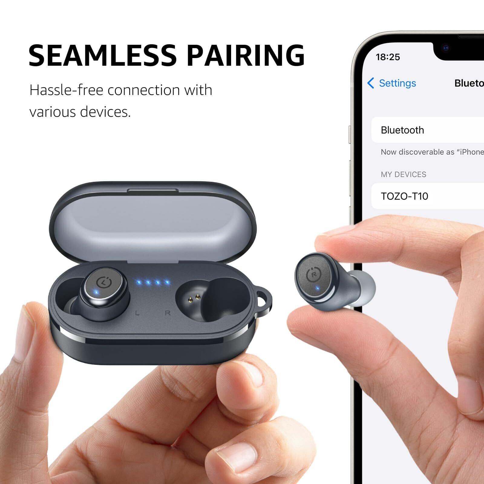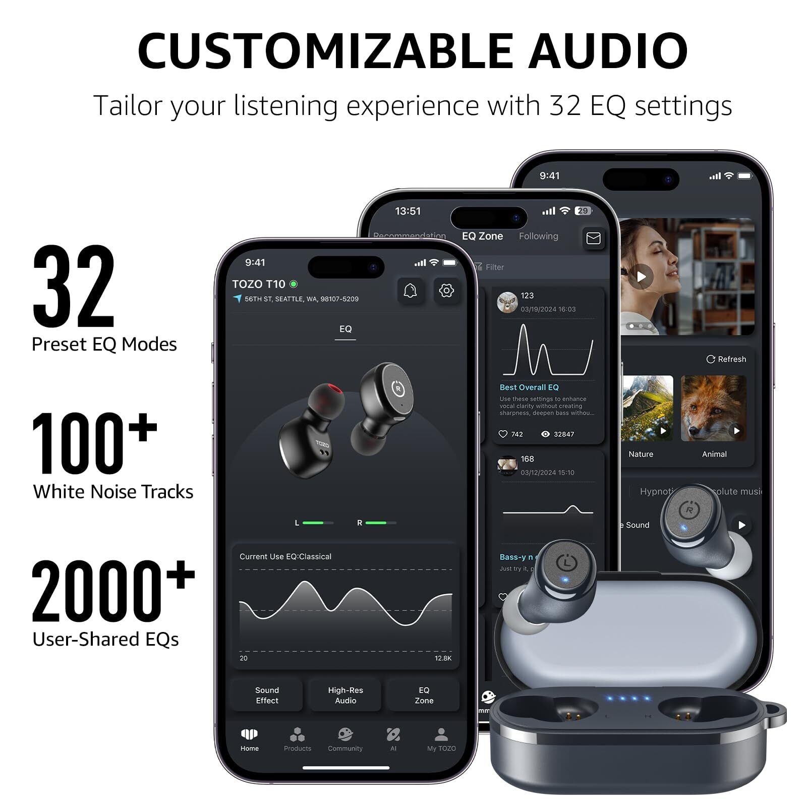 TOZO T10 イヤホン bluetooth ワイヤレスイヤホン 中低音域 暖色系音質 AI 通話時 ノイズキャンセリング 快適装着 カスタムEQ「寒色系に変換可能」 専用アプリ対応 AIチャット/音声通訳会議記録/カスタムタッチ操作 IPX8相当の防水性能 軽量 最大約55時間の再生 ぶるーとゅーす イヤフォン bluetooth 5.3 自動ペアリング USB-C 急速充電 ブルー | kki