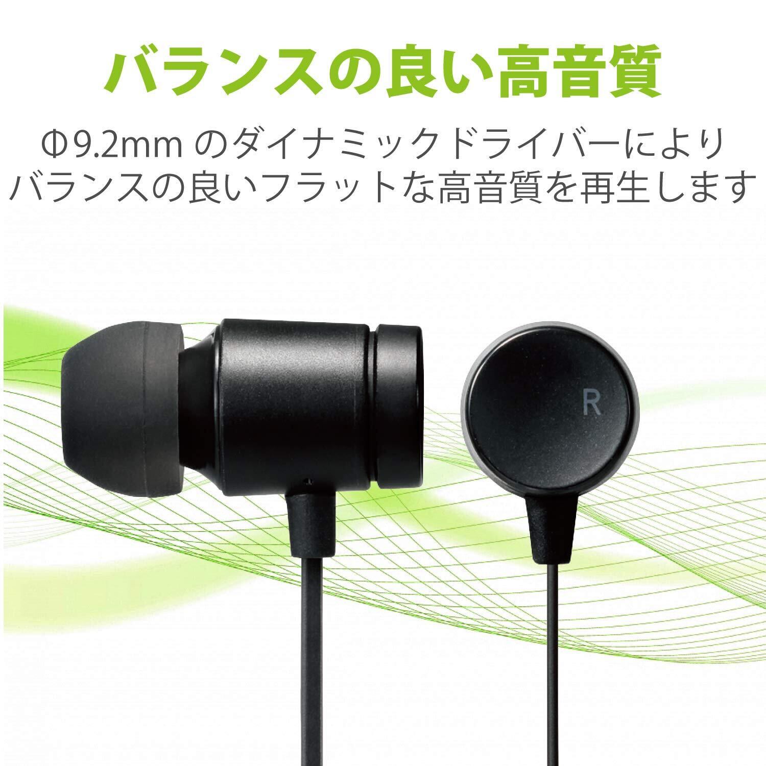 エレコム スマートフォン用ヘッドホン カナル型 3.5φ ステレオ φ9.2mmドライバー Fast Music 巻取 マイク有 FR10CM ブラック EHP-FR10CMBK