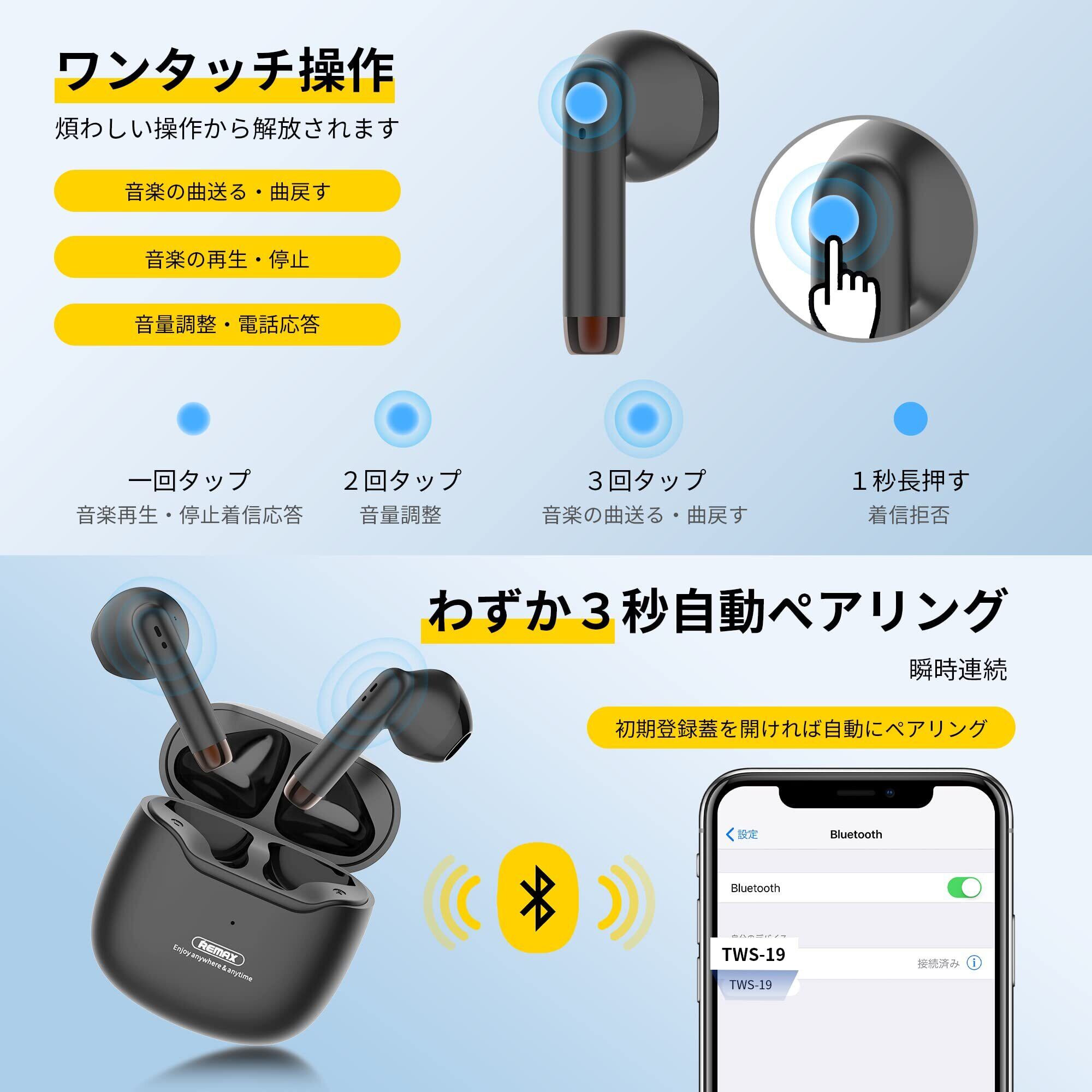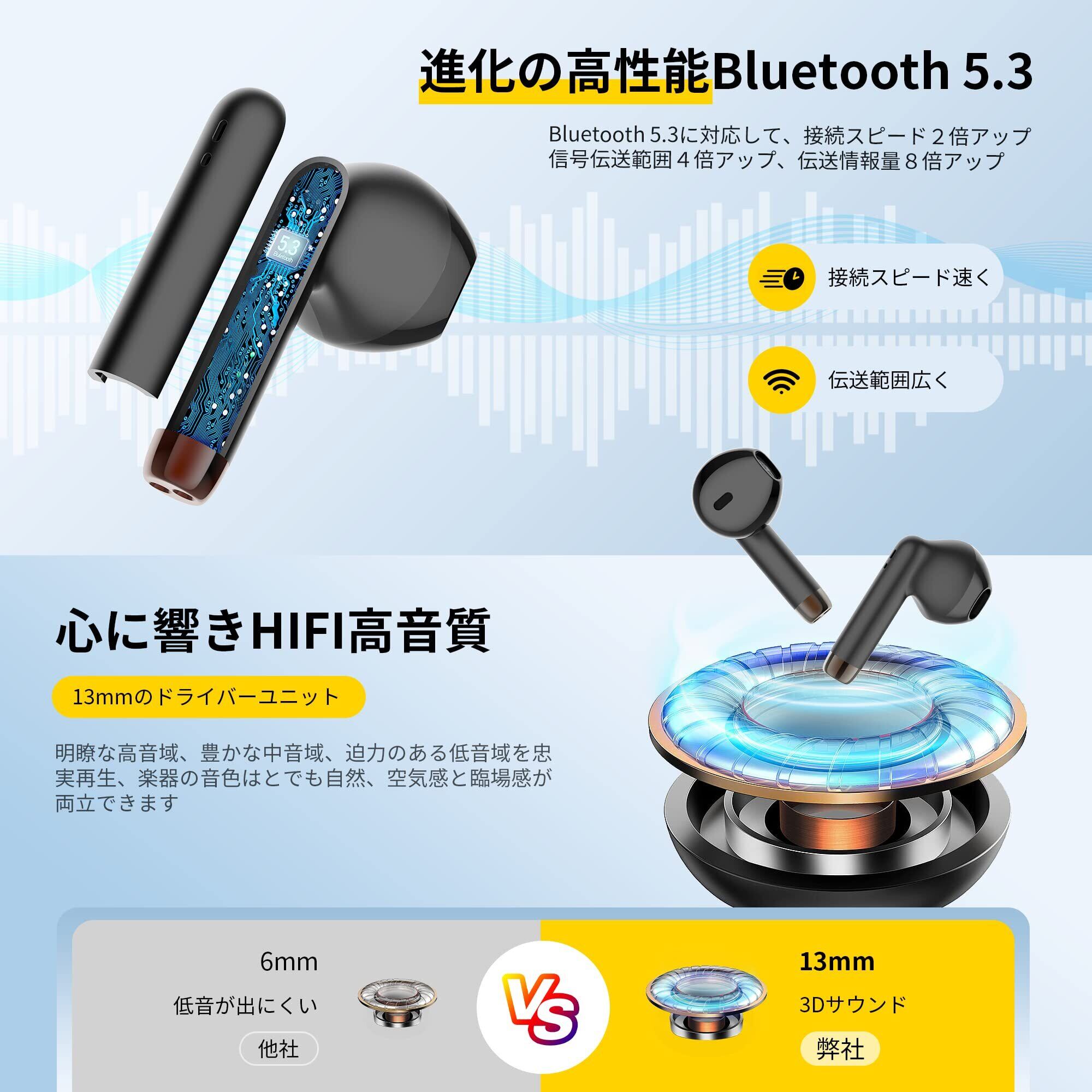 【最新型Bluetooth5.3技術】 bluetooth イヤホン ワイヤレスイヤホン bluetooth 瞬時接続 低遅延 Hi-Fi ブルートゥースイヤホン AAC対応 小型/コンパクト 最大35時間音楽再生 IPX7防水仕様 Type-C急速充電 片耳/両耳 左右分離型 フィット感 音量調整 ハンズフリー通話 ビジネス/WEB会議/ZOOM/通学/通勤/仕事/スポーツ (ブラック) | kki