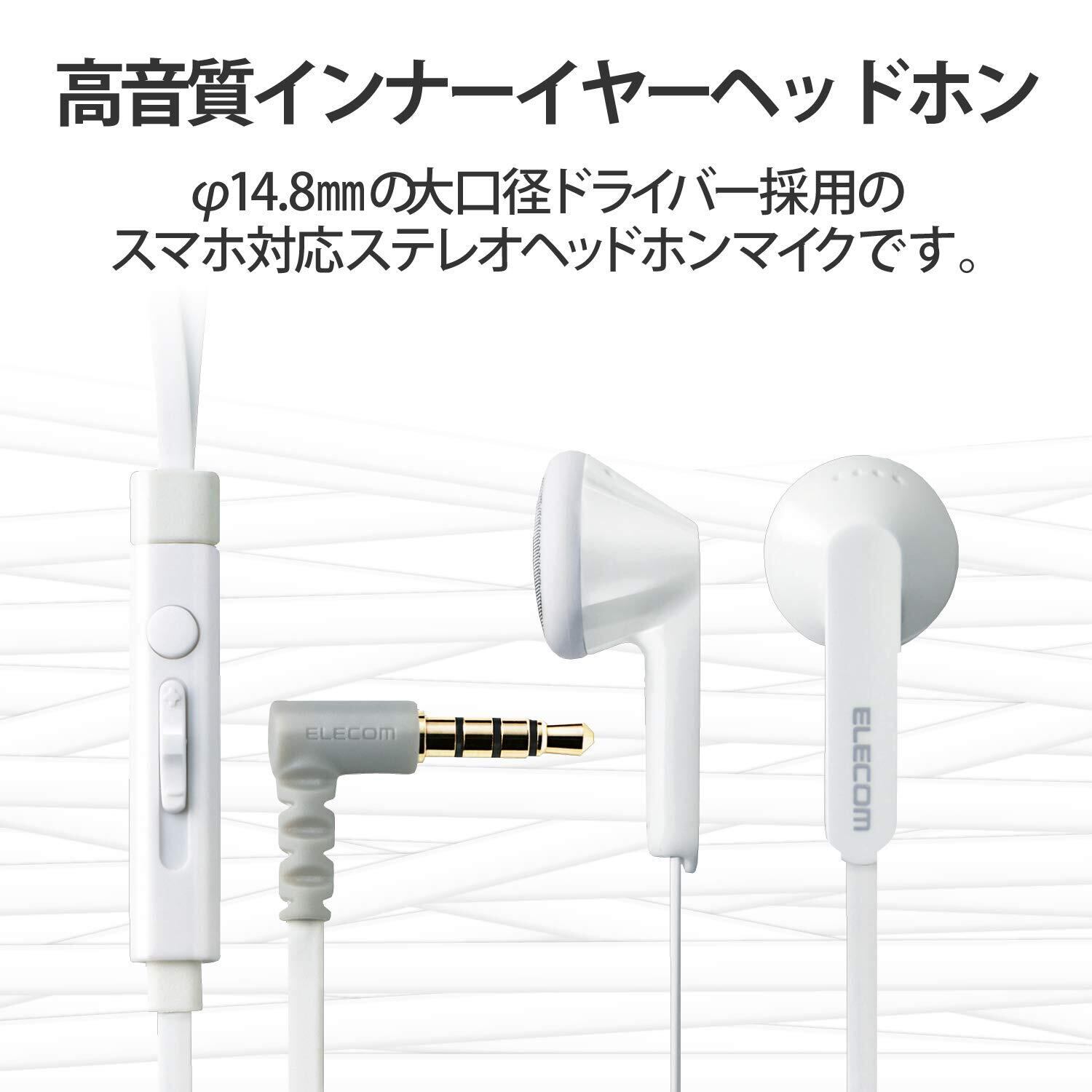 エレコムステレオイヤホン マイク付 3.5φ4極 1.2m(Y型) iPhone/スマホ対応 ホワイト EHP-IS3510MWH