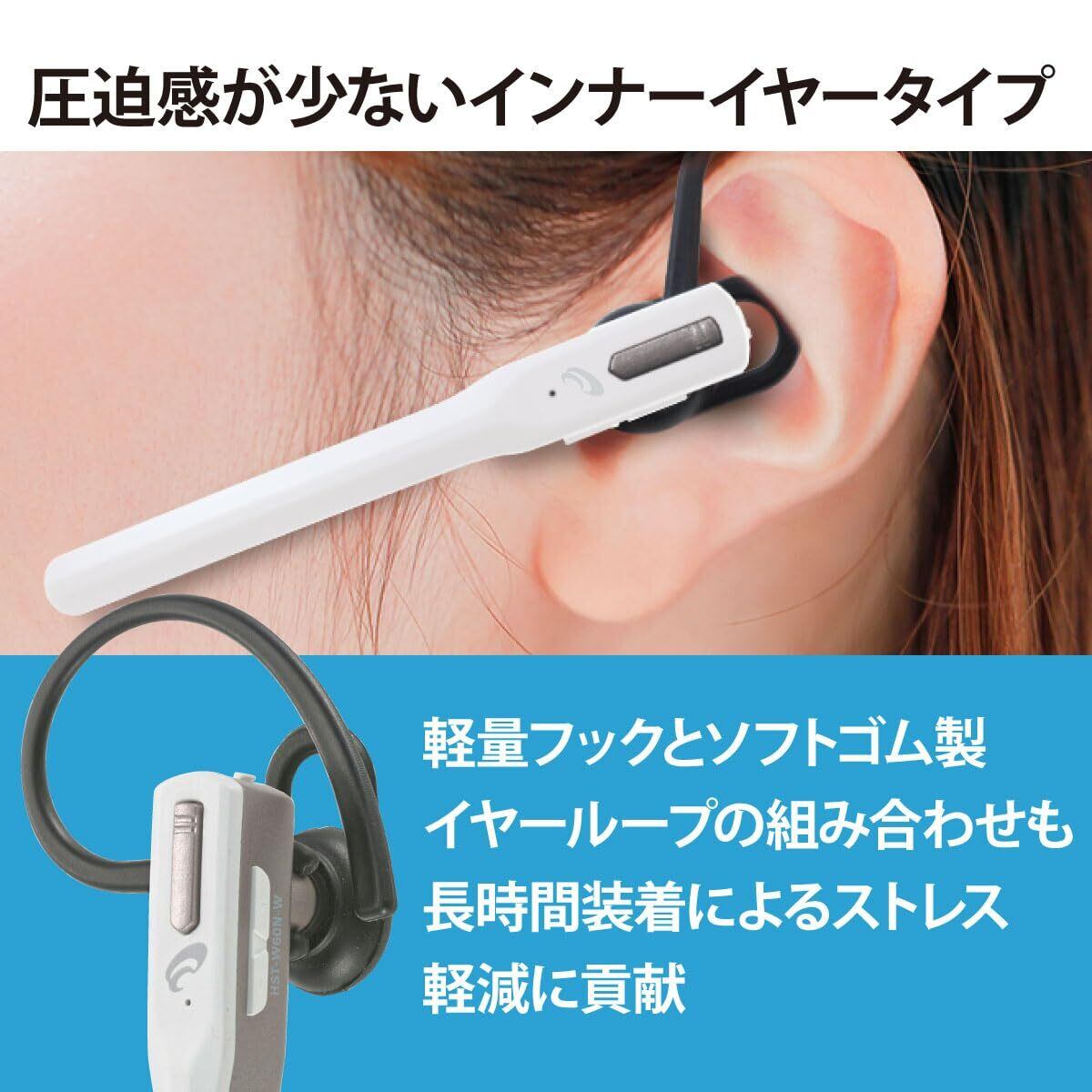 オーム電機AudioComm イヤホン 片耳 ワイヤレスイヤホン シングルイヤホン ヘッドセット イヤホンマイク スマホ着信/通話 軽量 フックタイプ 耳掛け式 Bluetooth マルチポイント インナーイヤー型 ホワイト HST-W60N-W 03-0493 OHM | kki