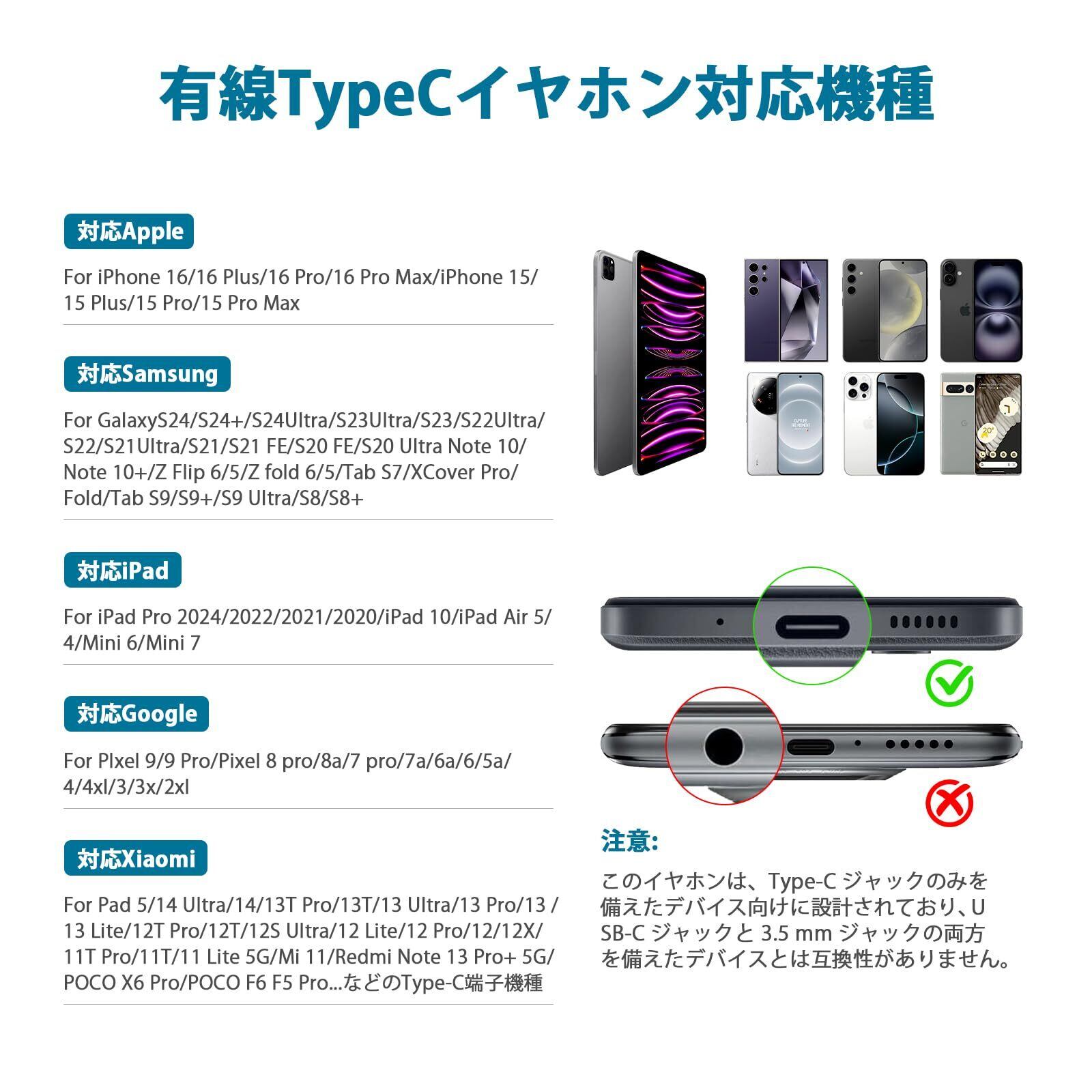 タイプc イヤホン 有線 マイク リモコン付き 対応iPhone 16/iPhone 15/iPad pro/Macbook/Androidスマホ Type-c イヤフォン カナル型 対応Galaxy/AQUOS/Xperia/OPPO/Google Pixel 8a 7a携帯 アンドロイド 音量調節 DAC内蔵 通話 会議 通勤通学用 おしゃれ 可愛い クリスマス ブルー | kki