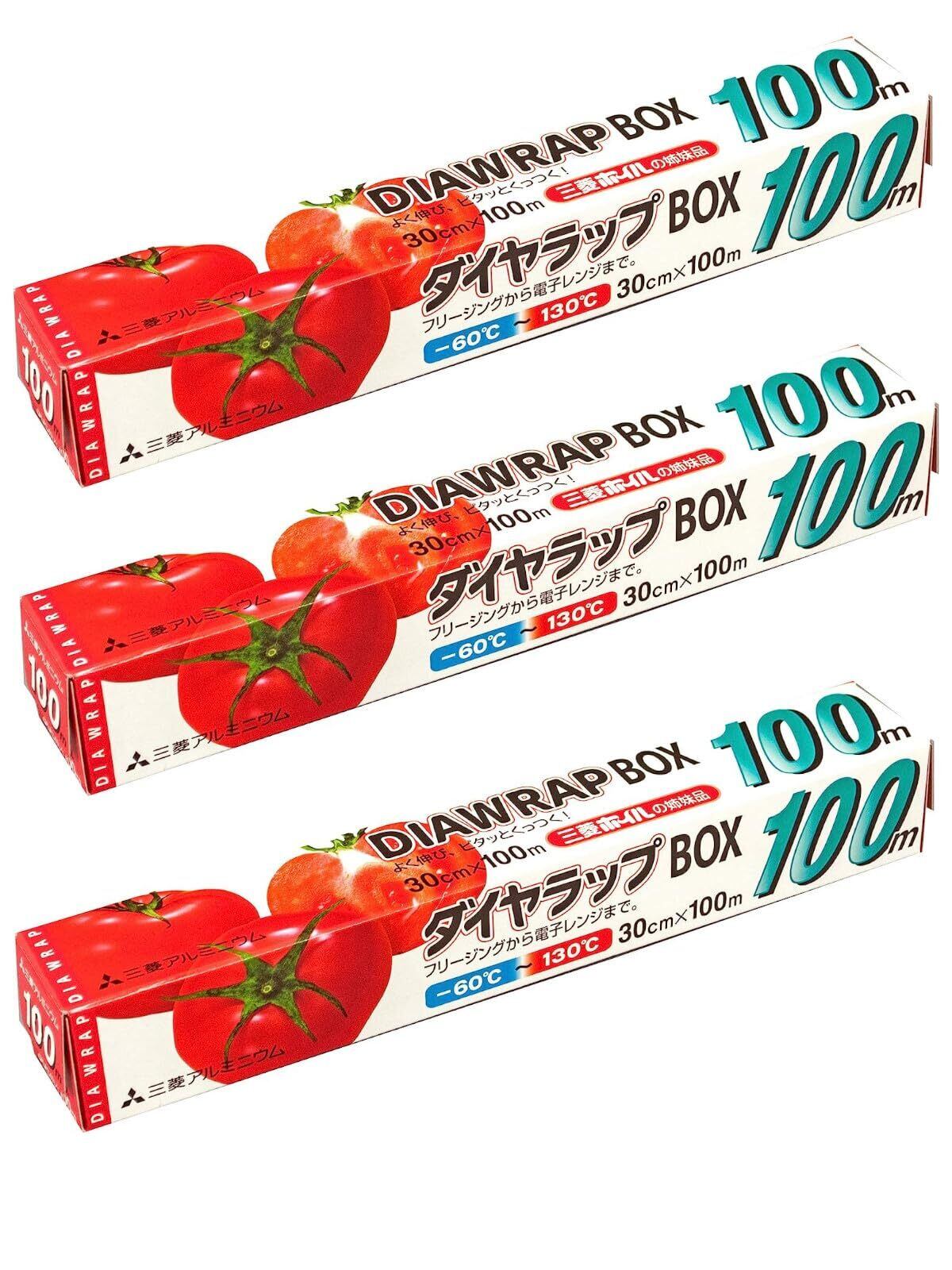 エムエーパッケージング ダイヤ ラップ BOX 業務用 透明 耐熱温度 -60度~130度 よく伸び ピタッとくっつく 幅30cm×長さ100m 3個セット