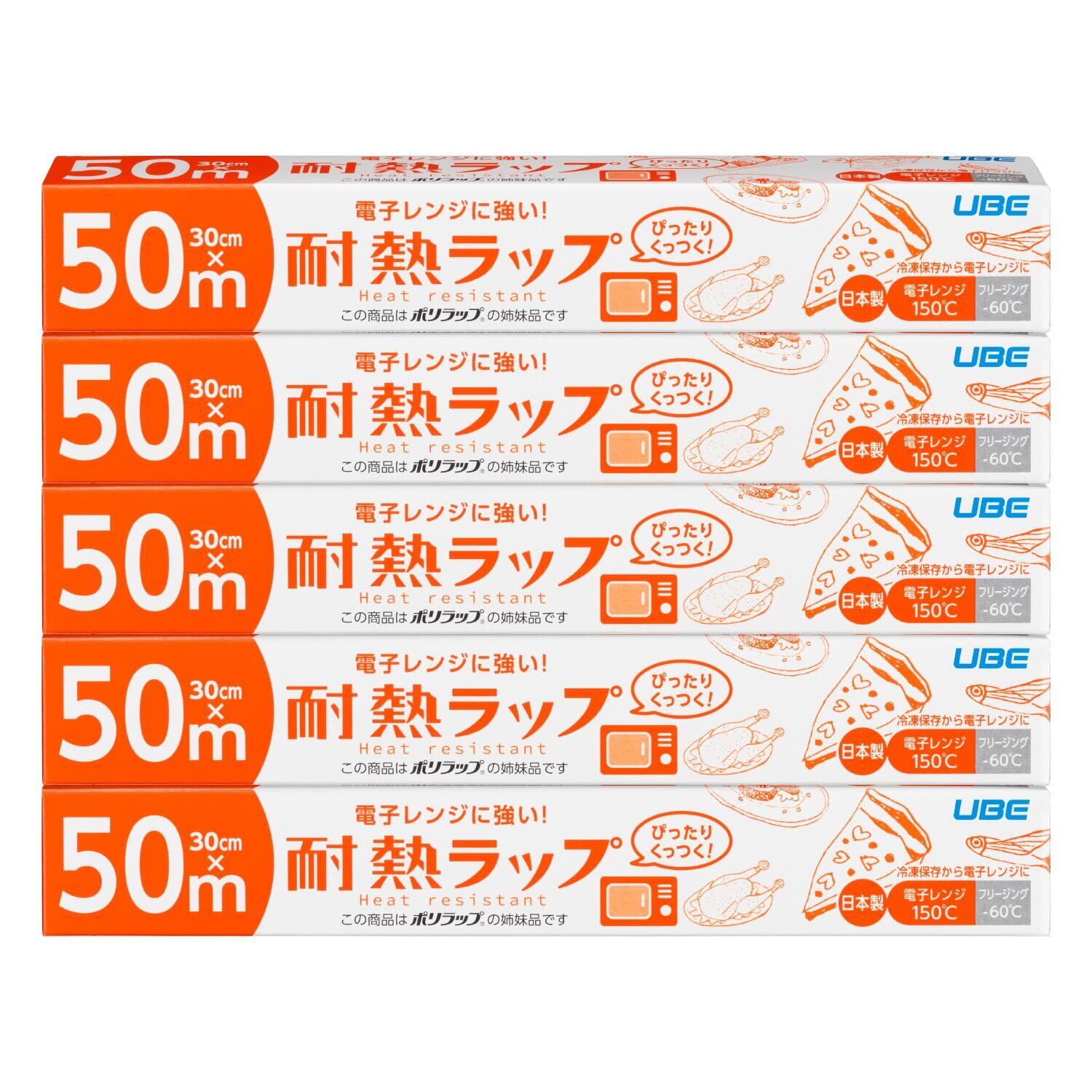 耐熱ラップ キッチンラップ 食品用ラップ 30cm×50m 5本セット 電子レンジ対応 食品包装 ぴったりくっつく 防災