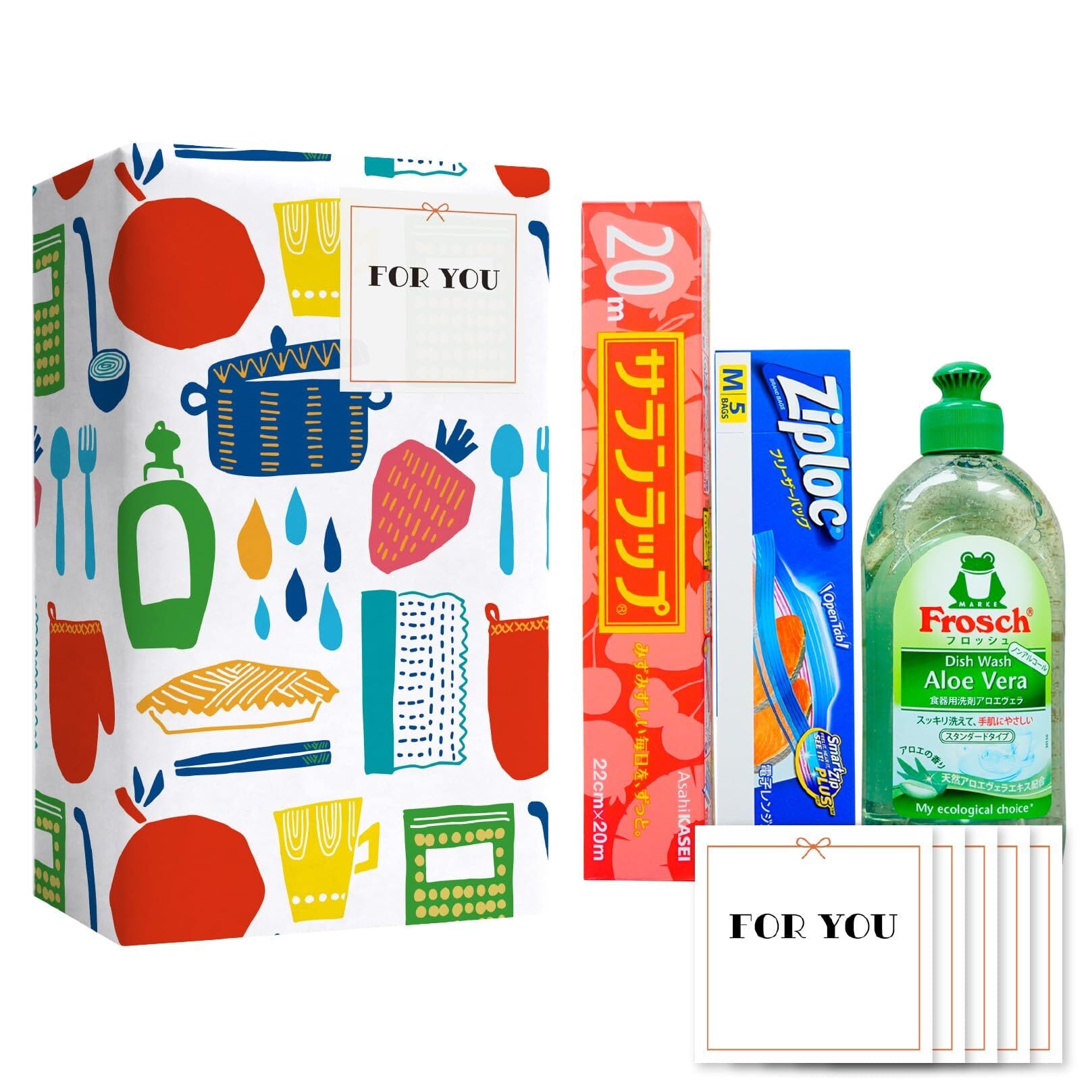 【5個セット】のしシール付き【北欧風デザイン ラップ フリーザーバッグ エコ洗剤 引越し 挨拶 粗品 ギフト 景品 展示会 イベント コンペ】 キッチンギフトセット キチンとご挨拶 引っ越しあいさつ用 北欧白 | kki