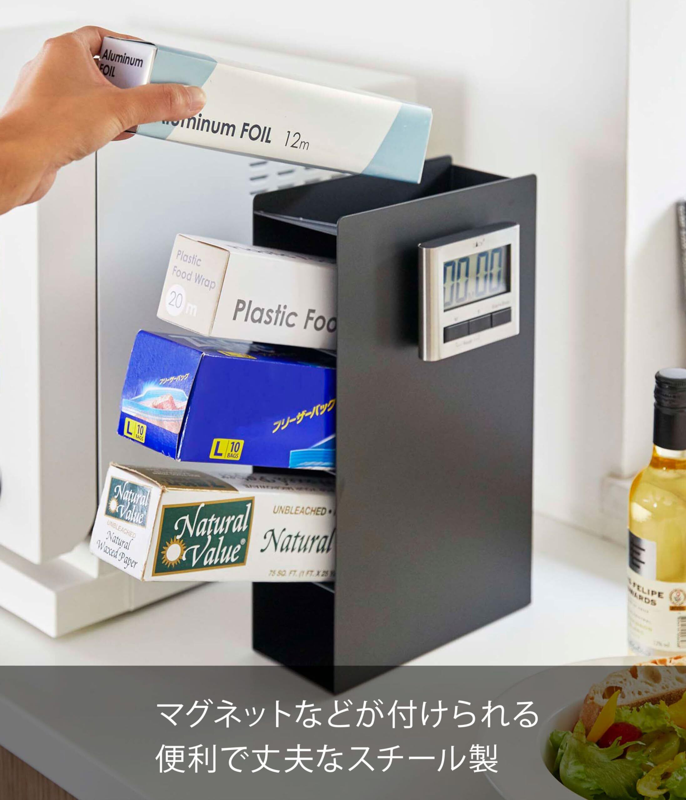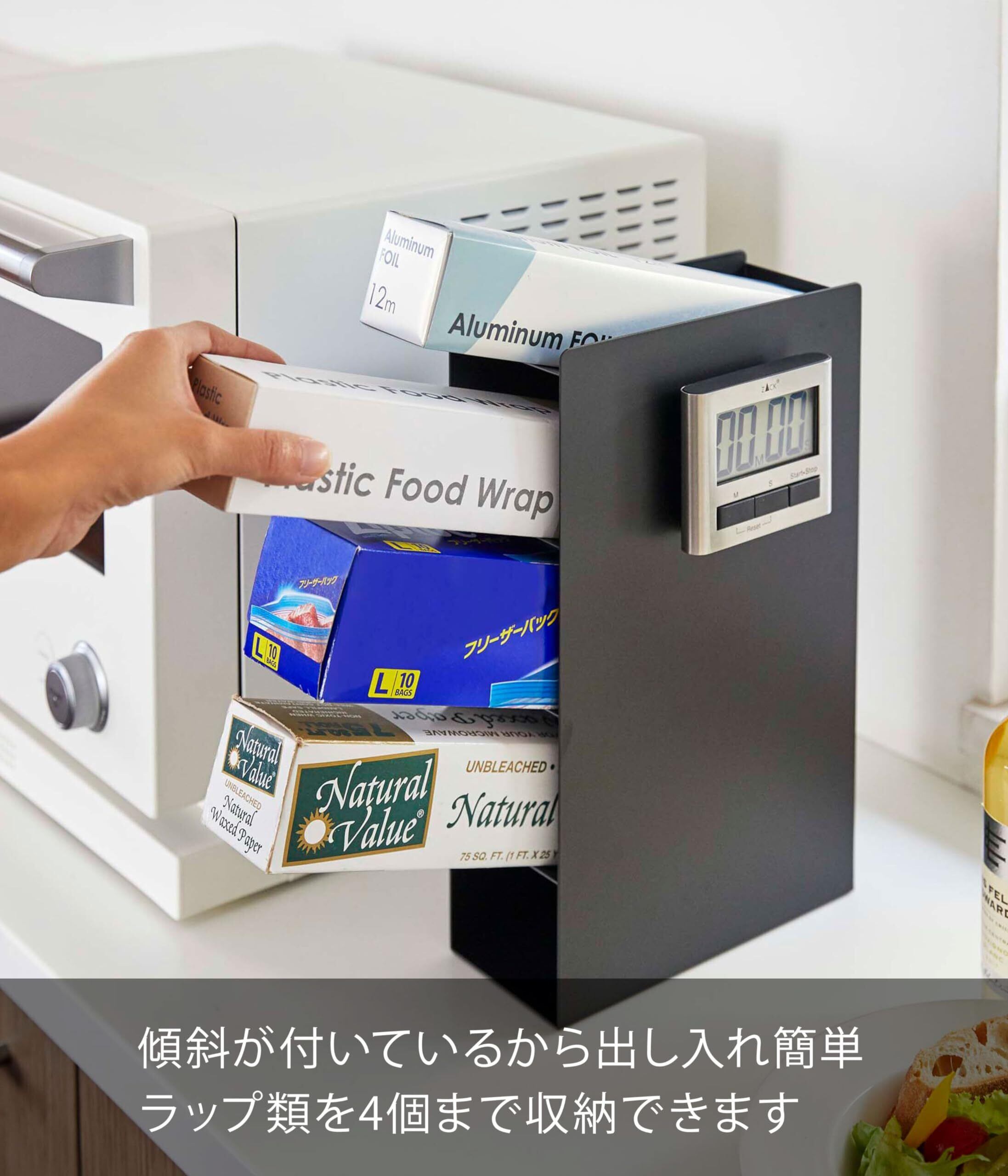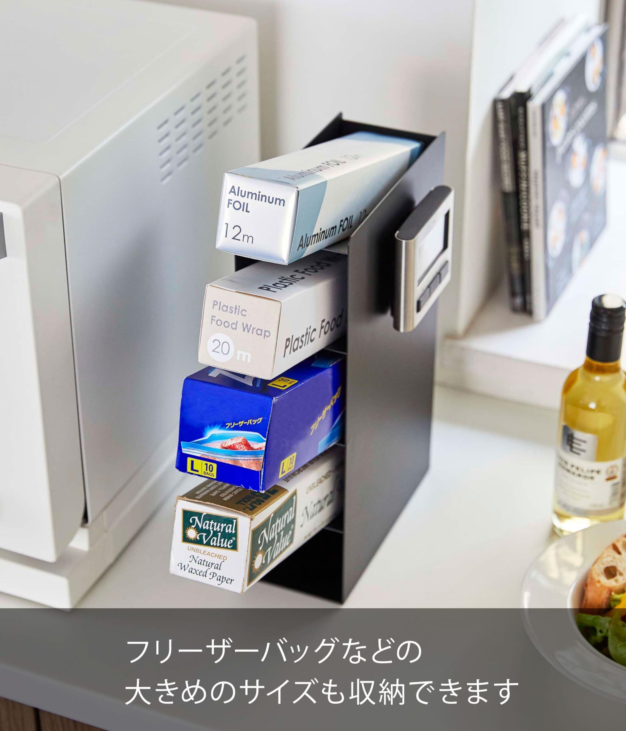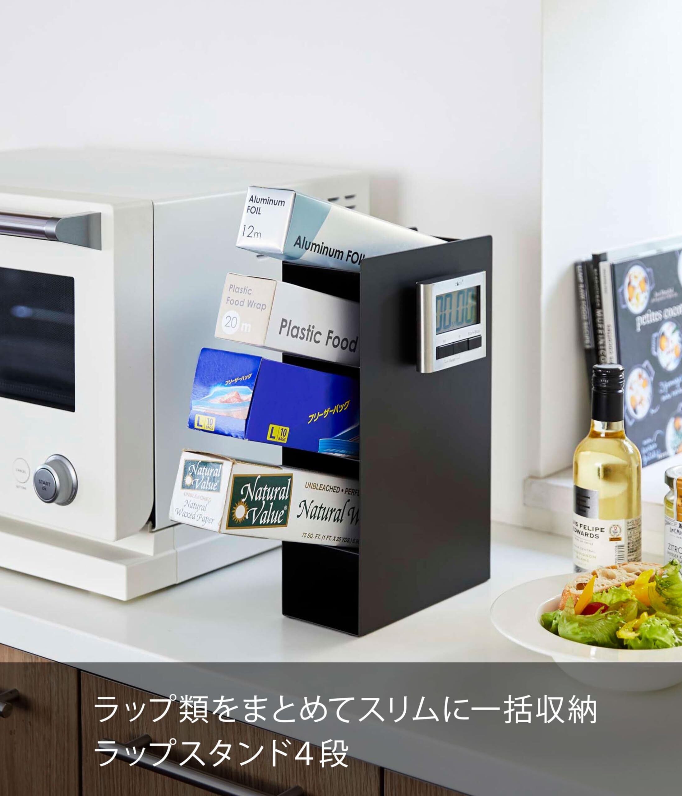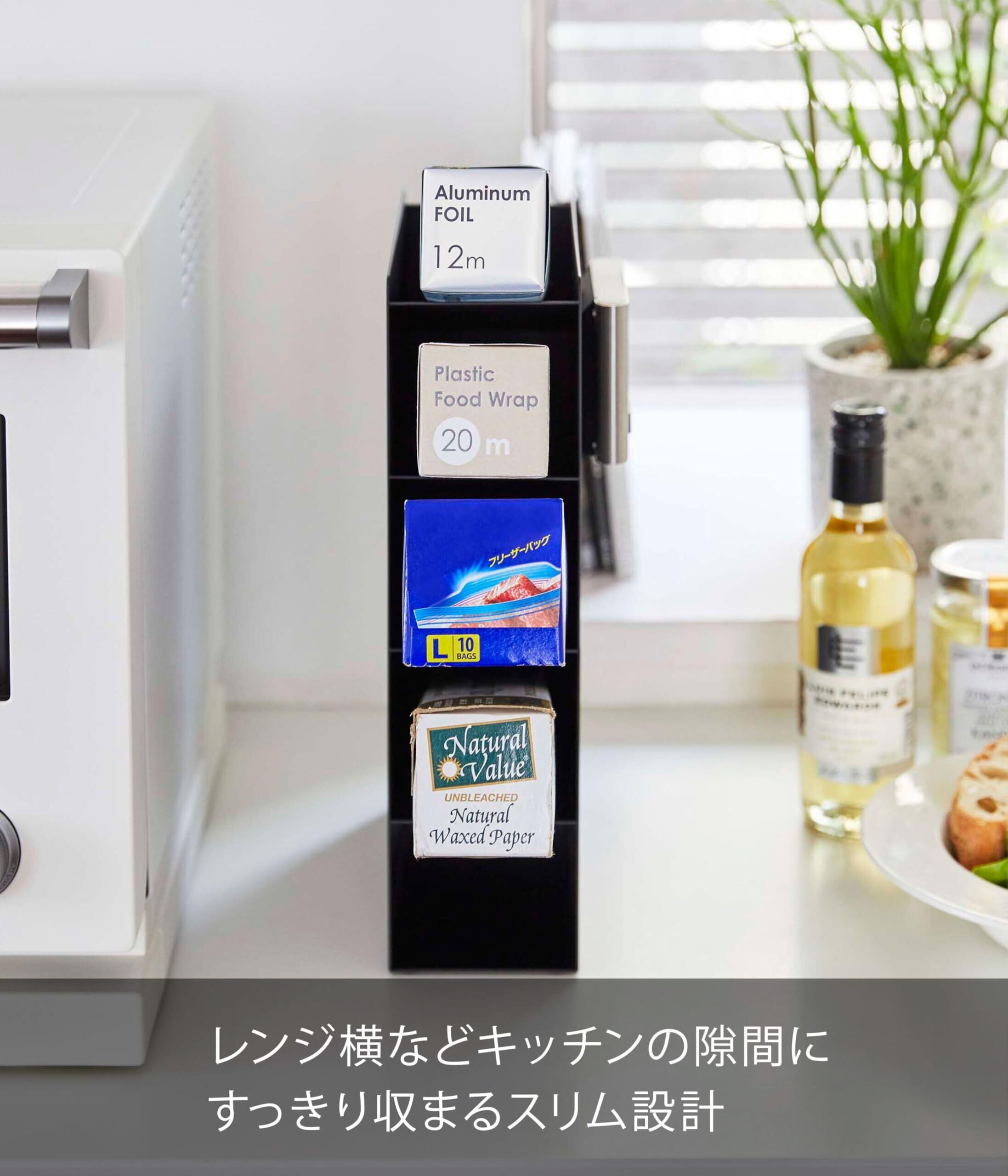 山崎実業(Yamazaki) ラップスタンド4段 ブラック 約W8XD18XH29.5cm タワー ラップホルダー スリム設計 出し入れ簡単 4996