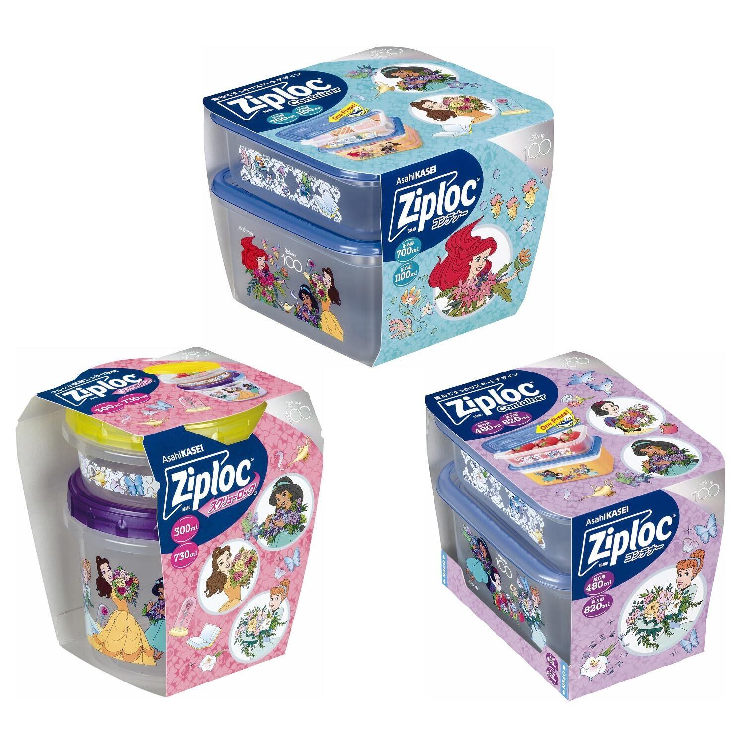 【限定デザイン】ジップロック Disneyプリンセス23 セット スクリューロック(300ml&730ml 各1個入) & コンテナー(長方形480ml&820ml 各1個入) & コンテナー(正方形700ml&1100ml 各1個入) | kki