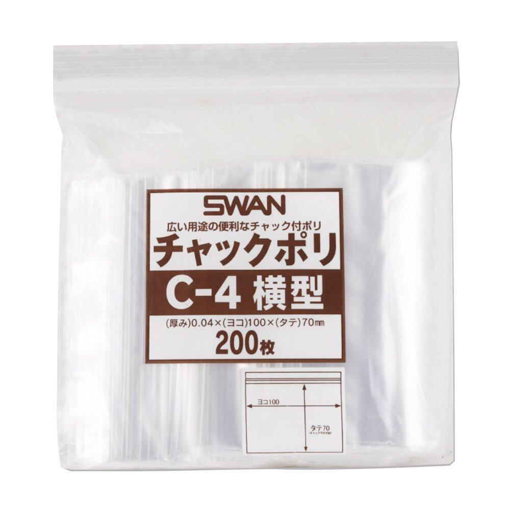 シモジマ(Shimojima) スワン 透明袋 チャック付き ポリ C-4 横型 200枚入 006656042 10×7cm