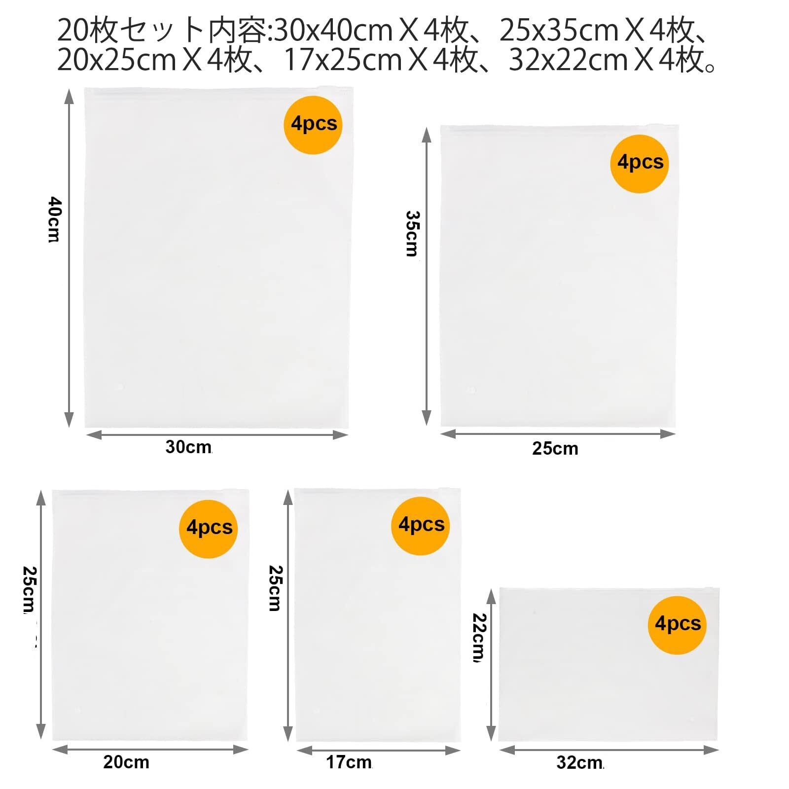 DERAYEE チャック付きポリ袋 ジップ付きビニール袋 ポリ袋 20枚セット プラスチック袋 半透明 ポリ袋 再封可能 收纳 洋服用 携帯 旅行用ポーチ 包装