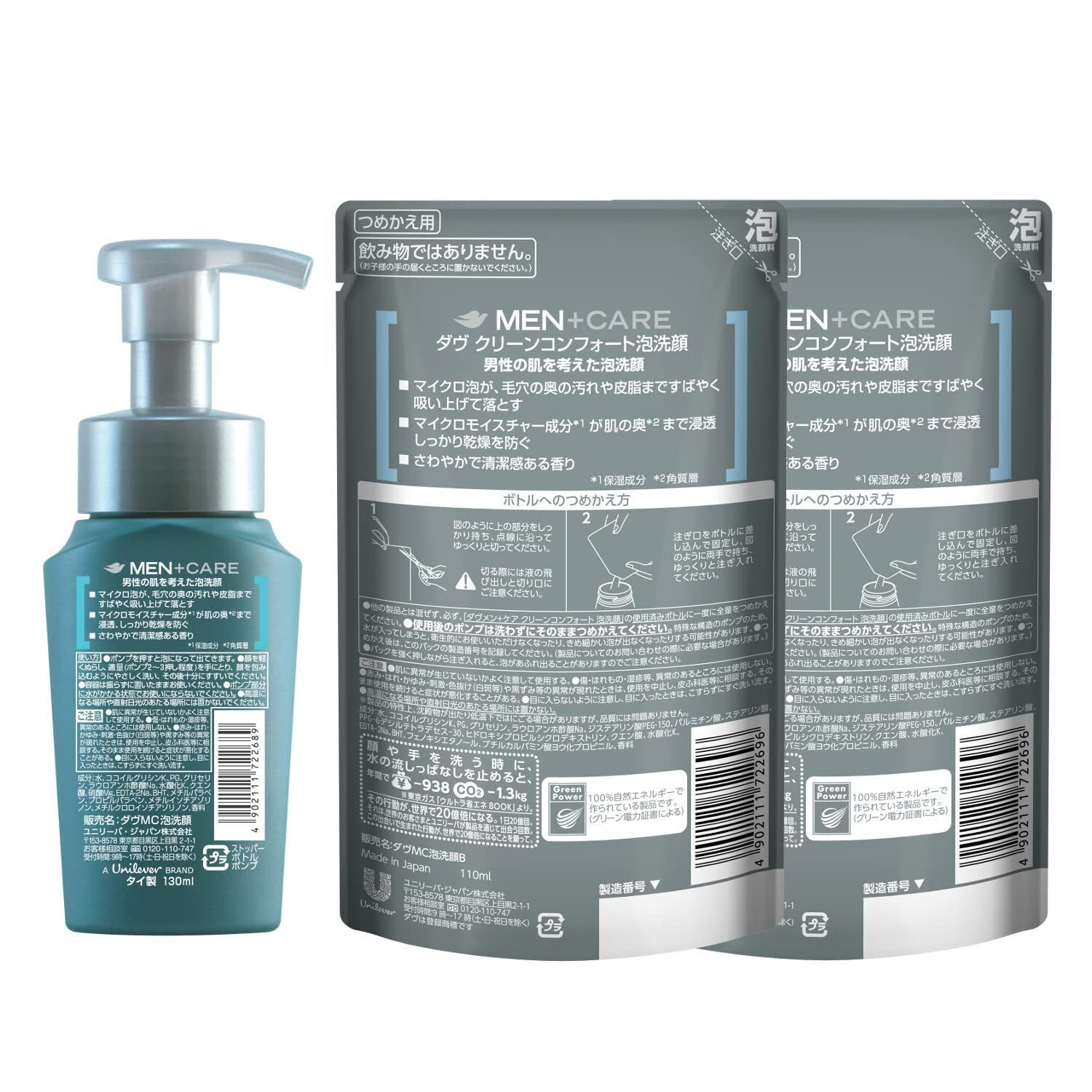 Dove クリーンコンフォート メンズ 泡洗顔 ポンプ 130ml + 詰め替え用 110ml×2個 さわやかで清潔感ある香り 保湿 皮脂 べたつき 男性用