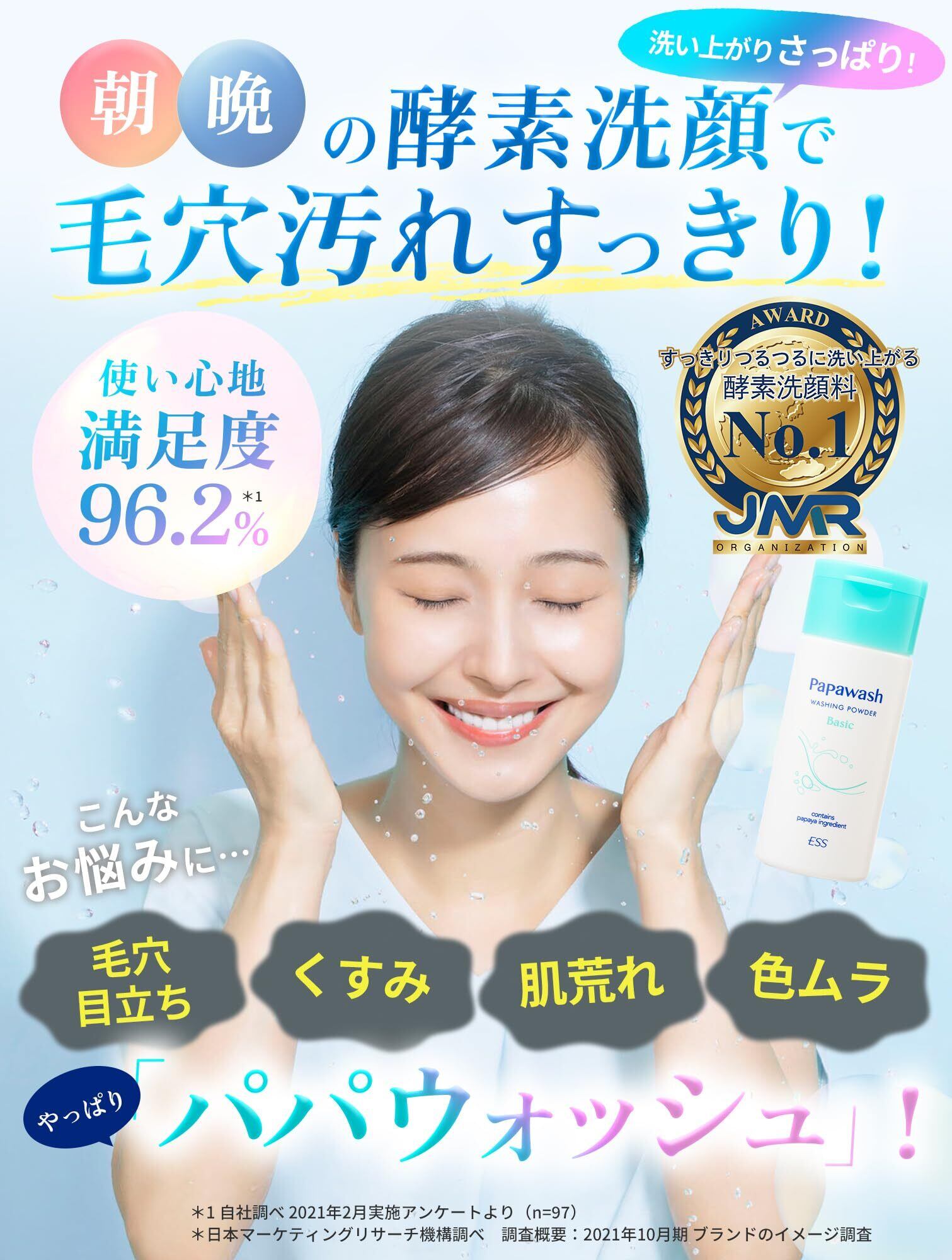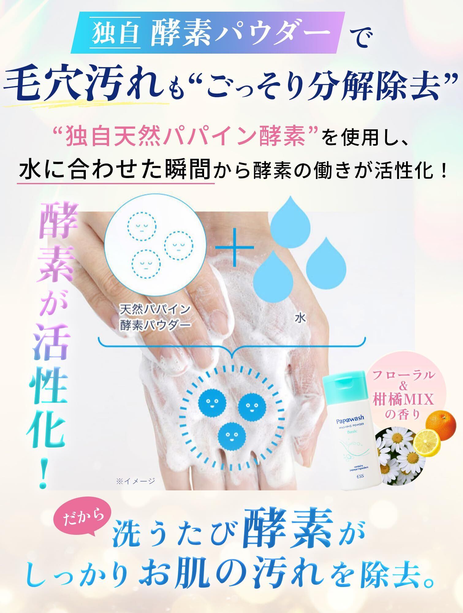 パパウォッシュ ベーシック (さっぱりタイプ) 酵素洗顔パウダー [毛穴/黒ずみ/角栓 スッキリ/透明感] パパイン酵素 配合 洗顔 毎日使える 敏感肌対応 ボトルタイプ 60g (約2ヶ月分) | kki