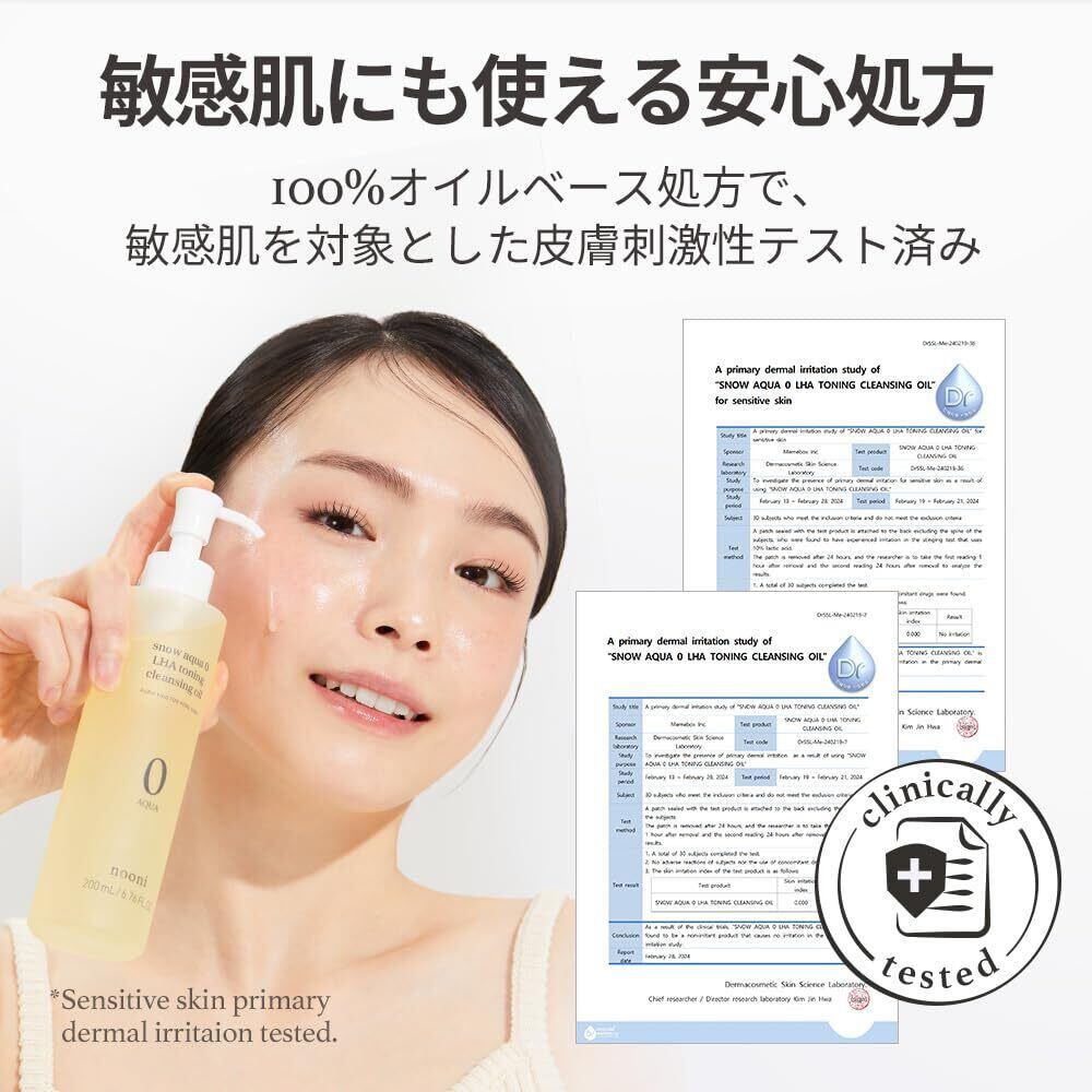 【NOONI/ヌニ】 韓国クレンジングオイル - スノーアクア 0 LHA トーニング 毛穴ケア 韓国洗顔オイルクレンザー, 6.76 fl.oz|メイクダブルクレンジング, ガラス肌, 卵肌, 黒ずみケア, 顔用毛穴クレンジングオイル|爽やかなシトラスオレンジの香り | kki