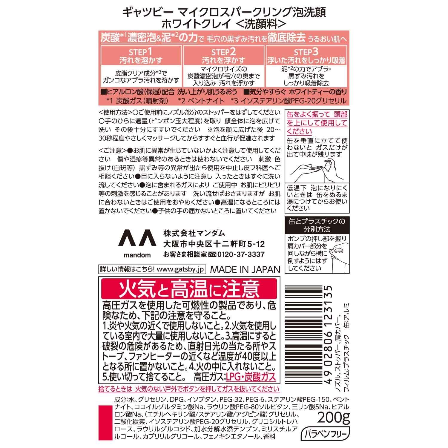 GATSBY(ギャツビー) マイクロスパークリング泡洗顔 ホワイトクレイ [ メンズ 濃密泡洗顔 炭酸 泥 ]200g×2本+サンプル(洗顔シート1枚)