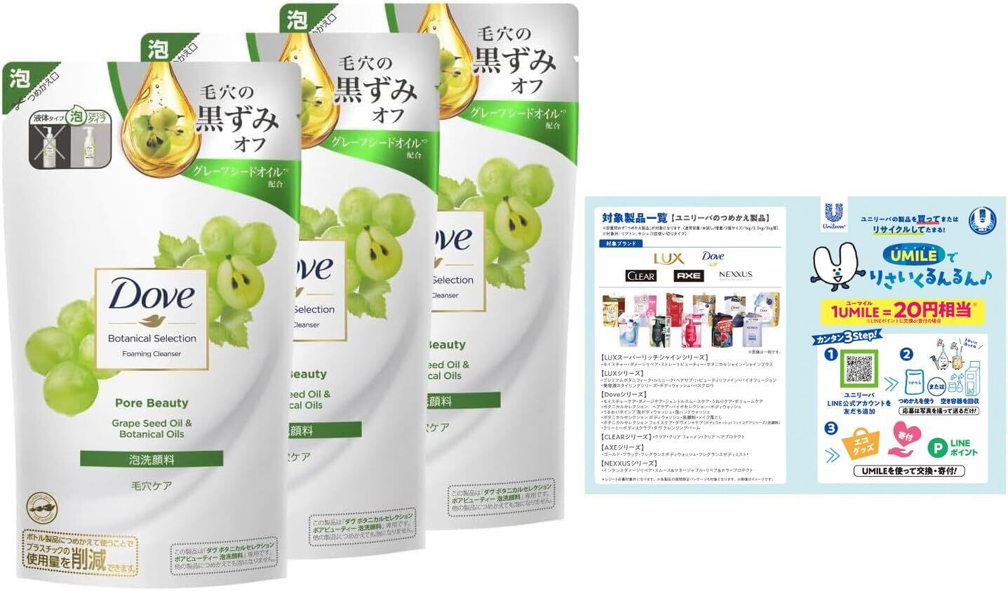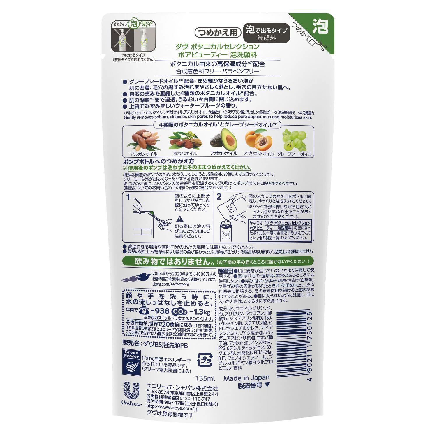 Dove(ダヴ) ボタニカルセレクション ポアビューティー 泡洗顔料 詰替え用×3個 リーフレット付き