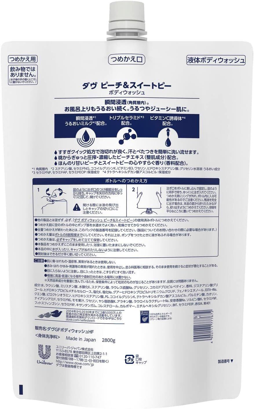Dove(ダヴ) ボディウォッシュ ピーチ&スイートピー 大容量 詰替 8.5個分 2.8kg 瞬間浸透うるおいミルク トリプルセラミド配合 濃密泡