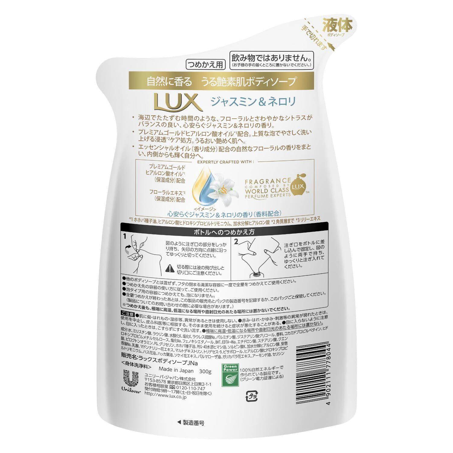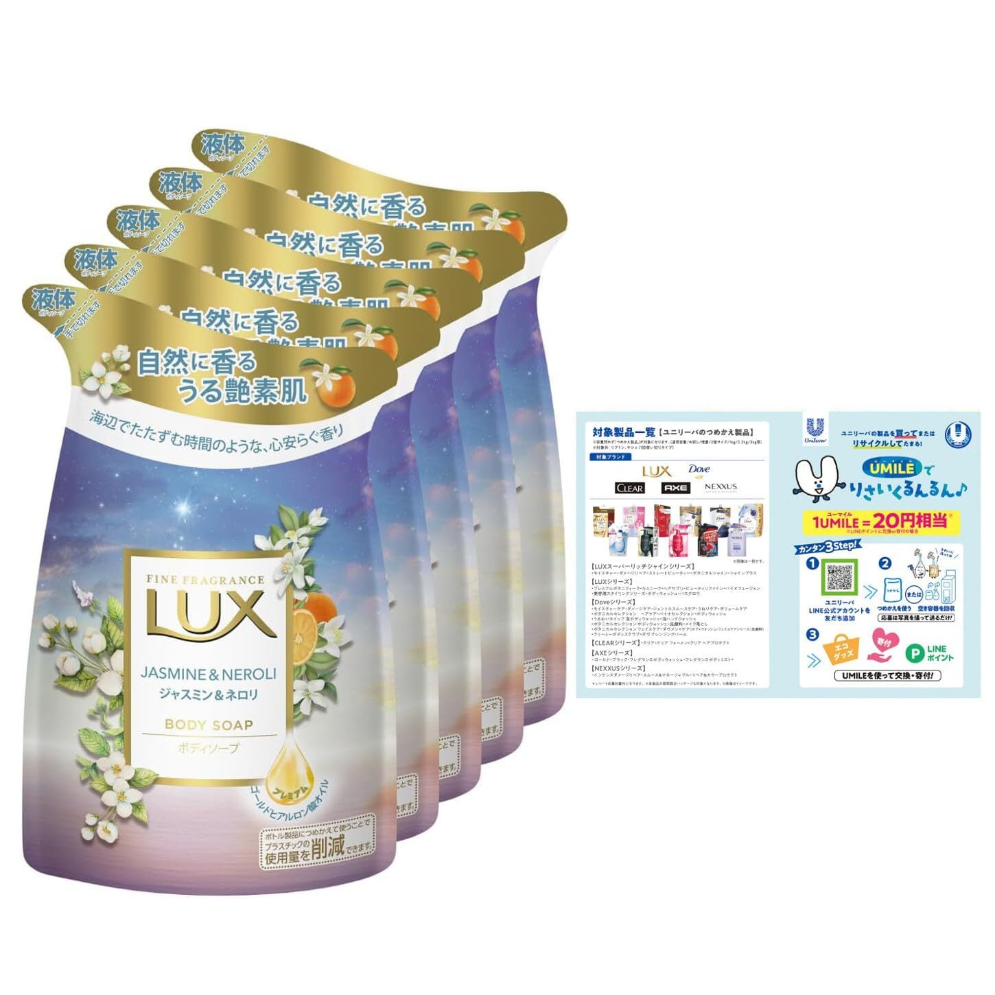 LUX(ラックス) ボディソープ ジャスミン&ネロリ 詰替え用 300g×5個 リーフレット付き ボディーソープ 心安らぐジャスミン&ネロリの香り(香料配合)
