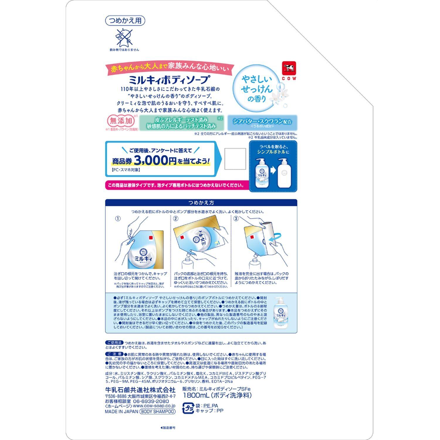 ミルキィボディソープやさしいせっけん 詰替 1800ML