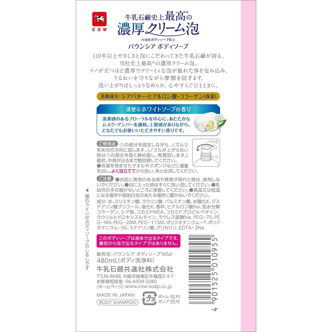 バウンシアボディソープ ホワイトソープの香り ポンプ 480ml
