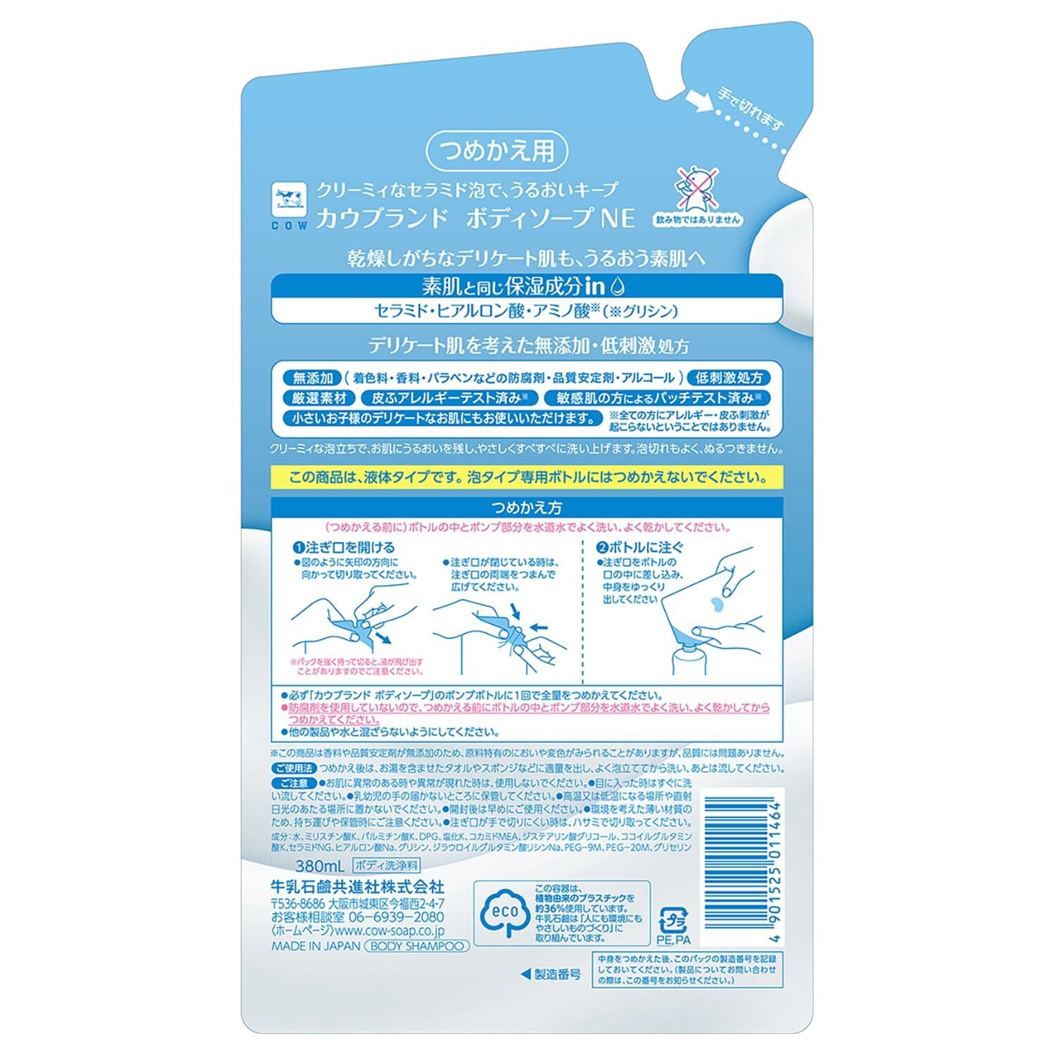 カウブランド 無添加 カウブランド無添加 ボディソープ 詰替用 380ml