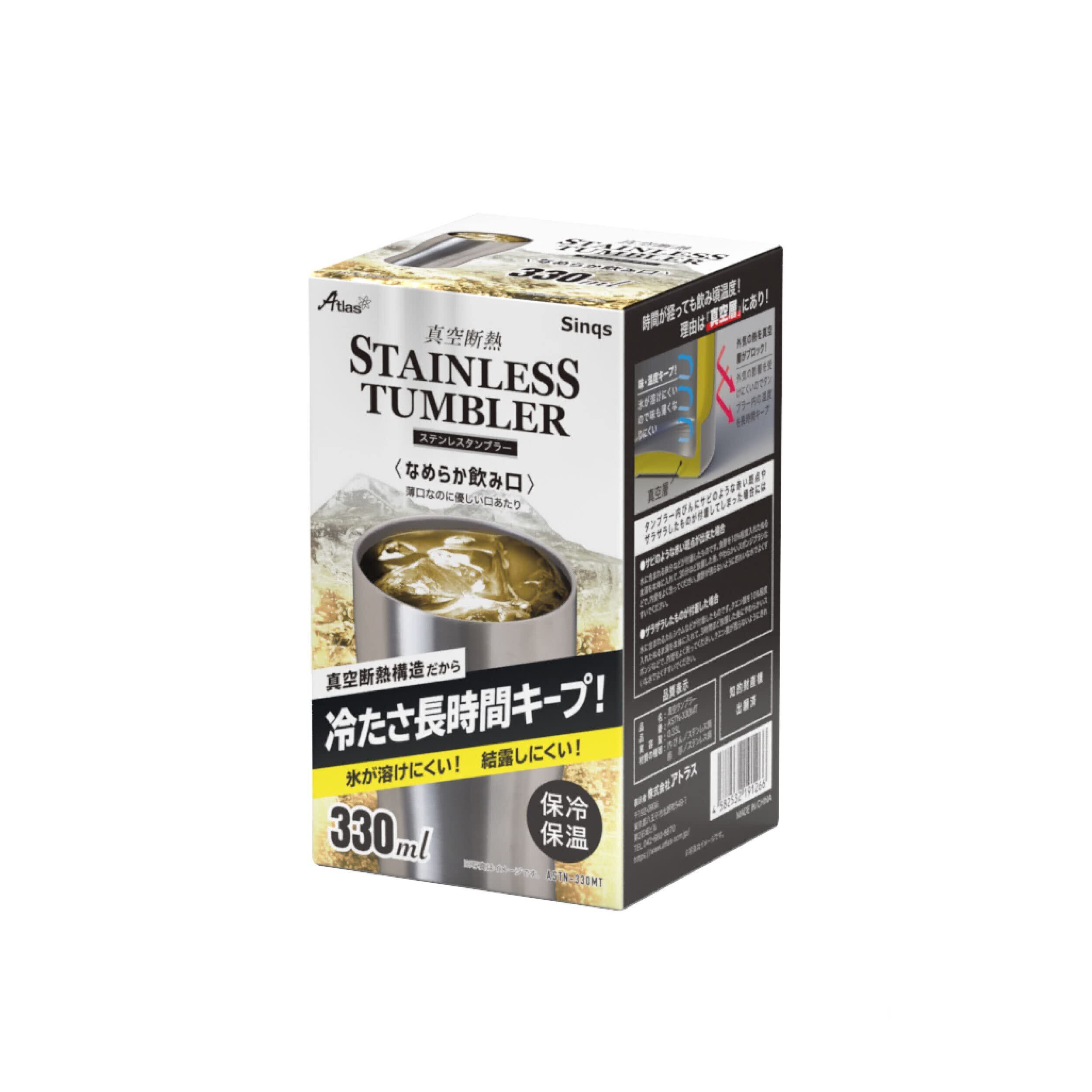 Atlas アトラス 保温 保冷 ステンレス タンブラー 330ml 4個 セット なめらか飲み口 真空断熱 お酒 ビール ハイボール ASTN-330MT4P
