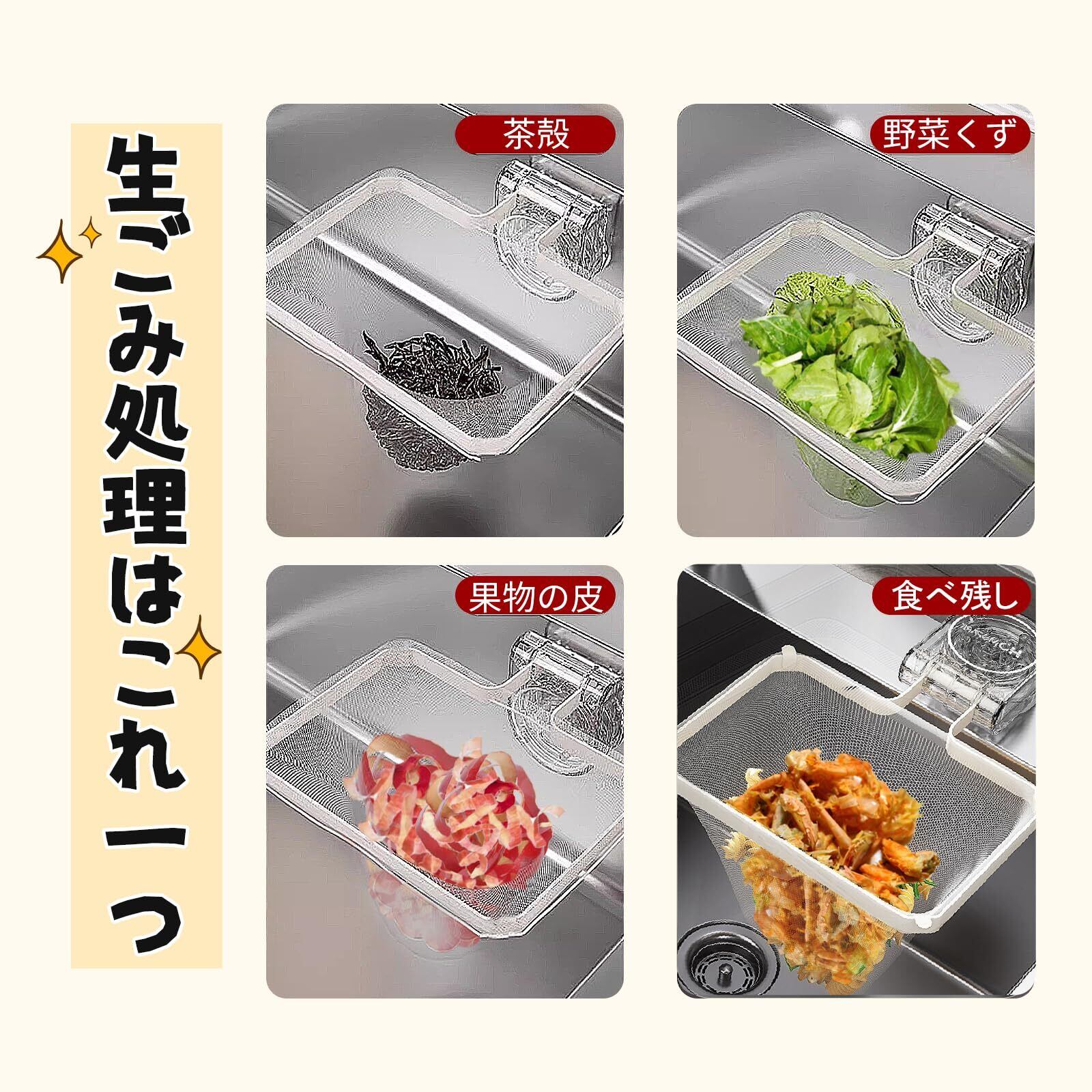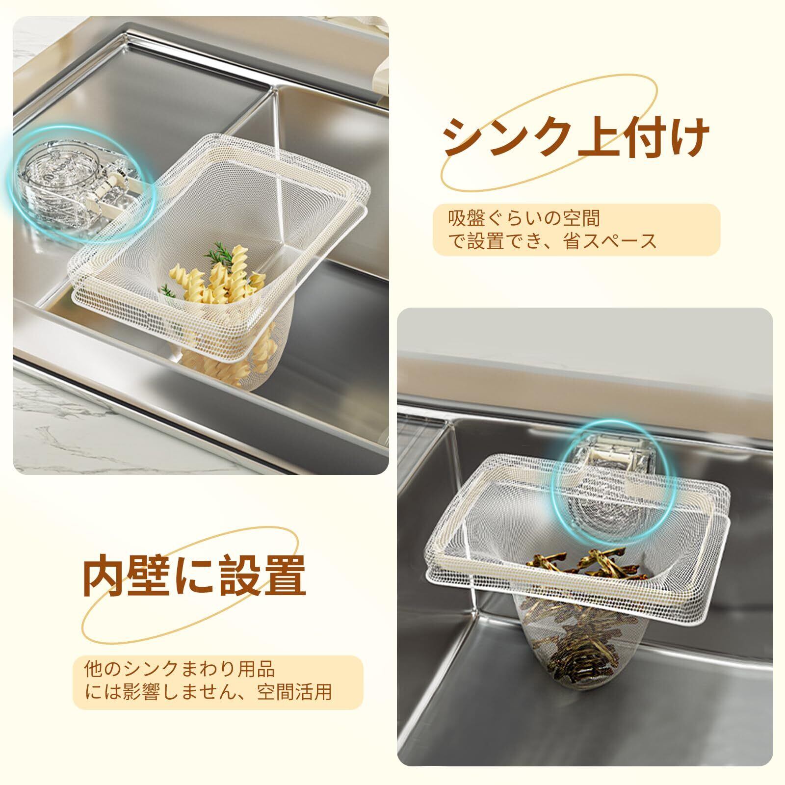 Homspark 三角コーナー いらず 強力吸盤 サンカクコーナー水切りネット ホルダー シンク ゴミ受け キッチン 生ゴミ処理 水切りネット 50枚付き