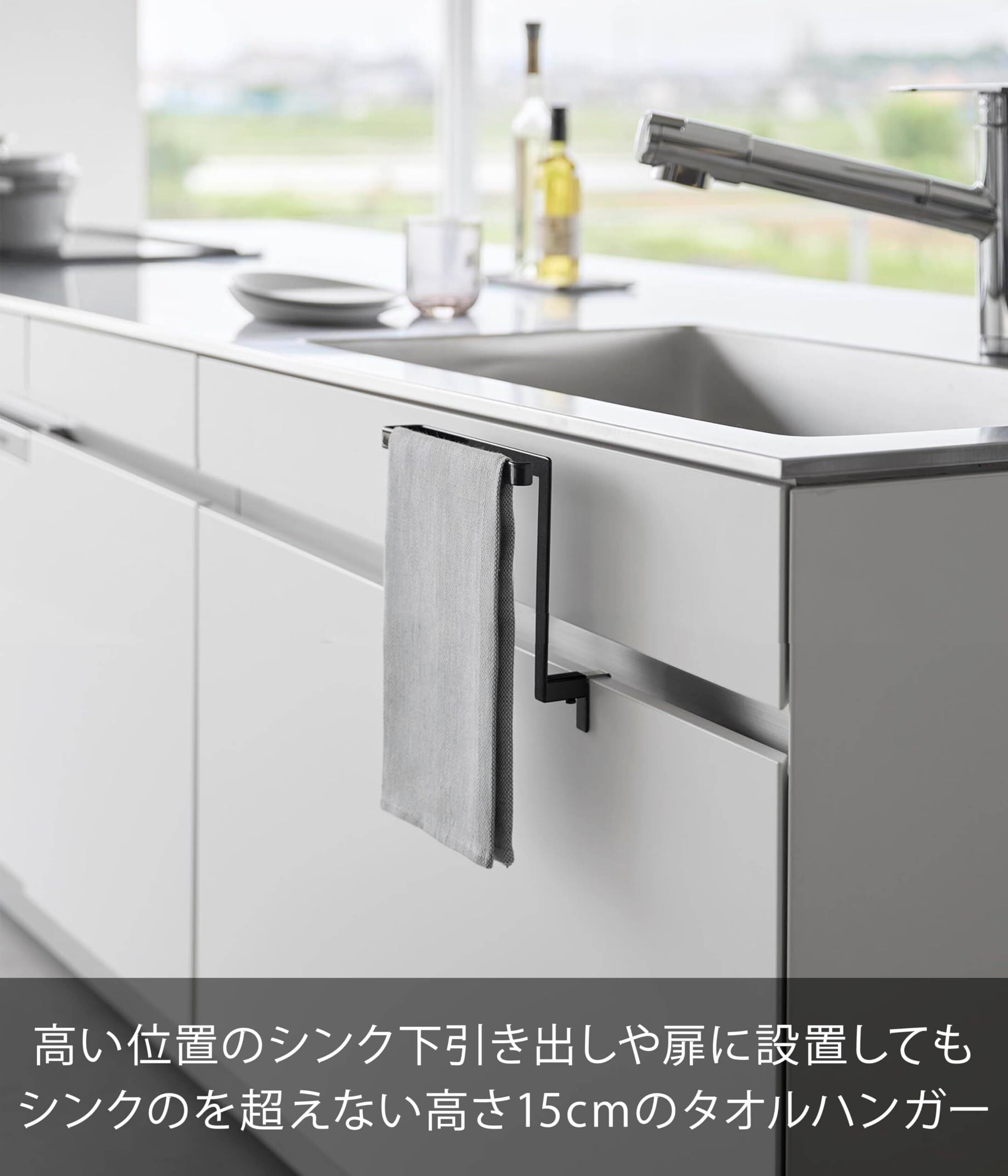 山崎実業(Yamazaki) キッチン シンク下 収納 扉 タオルハンガー H15 ブラック W20×D9~10×H19.5cm タワー tower タオル掛け タオルハンガーバー 巻き込み防止 1591 | kki