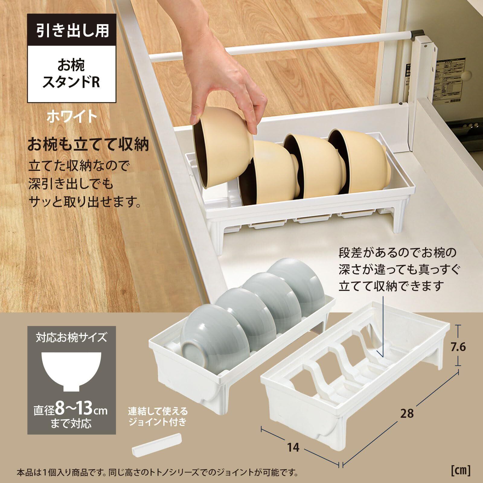 リッチェル キッチン収納 食器置き TOTONO(トトノ) 引き出し用 お椀スタンドR ホワイト 日本製 食洗機対応 取っ手 ジョイント付き 使いやすい 便利 抗菌加工 おしゃれ シンプル 収納グッズ 皿置き ケース お椀 お茶碗 ボウル 10012 | kki
