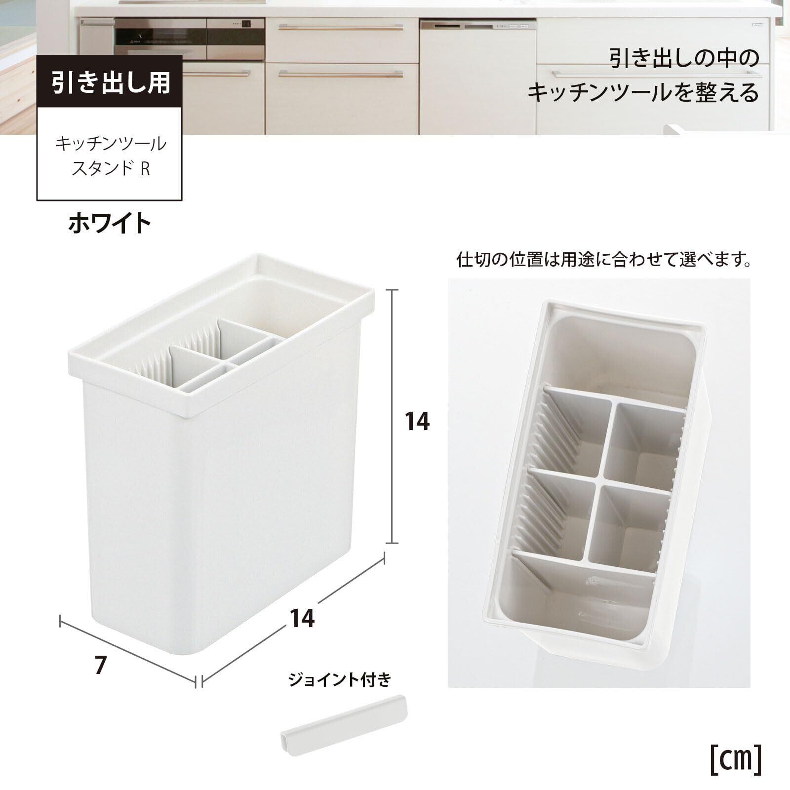 リッチェル TOTONO(トトノ) 収納ボックス 引き出し用 キッチンツールスタンドR ホワイト 日本製 食洗機対応 ジョイント付き 連結可能 使いやすい 便利 抗菌加工 おしゃれ シンプル ケース 菜箸 お玉 ターナー スプーン ナイフ はさみ 11002 | kki