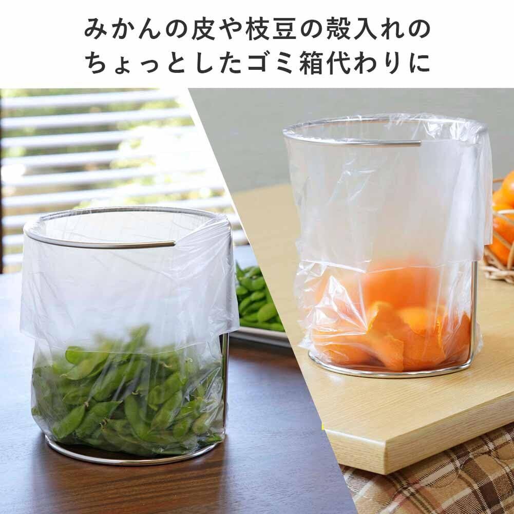下村企販 ポリ袋ホルダー 【日本製】 お手入れ簡単 ぬめりにくい ひっくり返して使い分け 生ごみスタンド 三角コーナー代用 ごみ箱 シンプル 丸型 大 野菜の皮むき ポリ袋再利用 エコ シルバー ステンレス 燕三条 38125 | kki