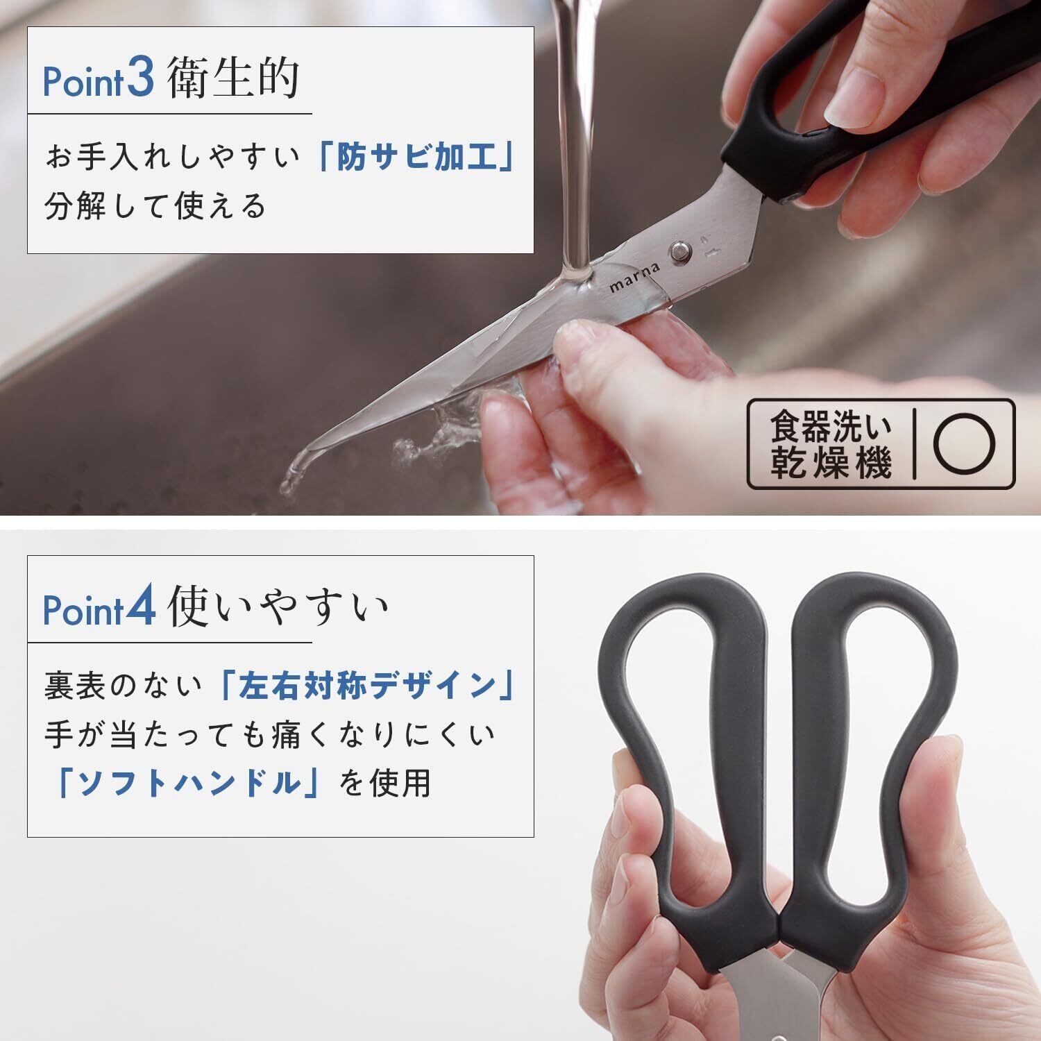 マーナ (marna) 料理のハサミ (分解可/薬味や鶏皮も切りやすい) キッチンバサミ 食洗機対応 ステンレス 料理用 調理ハサミ K747W