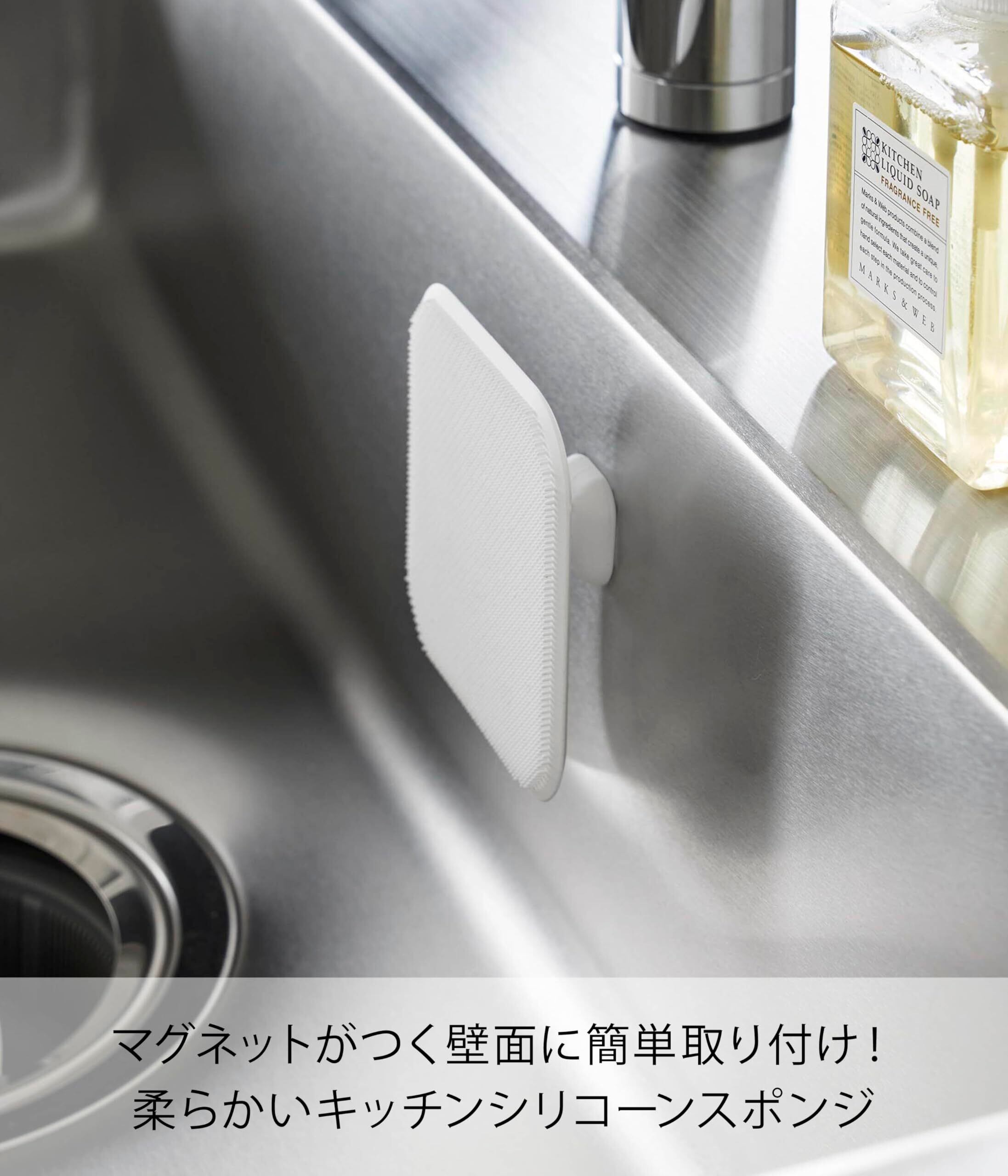 山崎実業(Yamazaki) マグネット キッチン シリコーン スポンジ ホワイト W9.5×D9.5×H3cm タワー tower 食洗機対応 浮かせる収納 食器洗い 1844