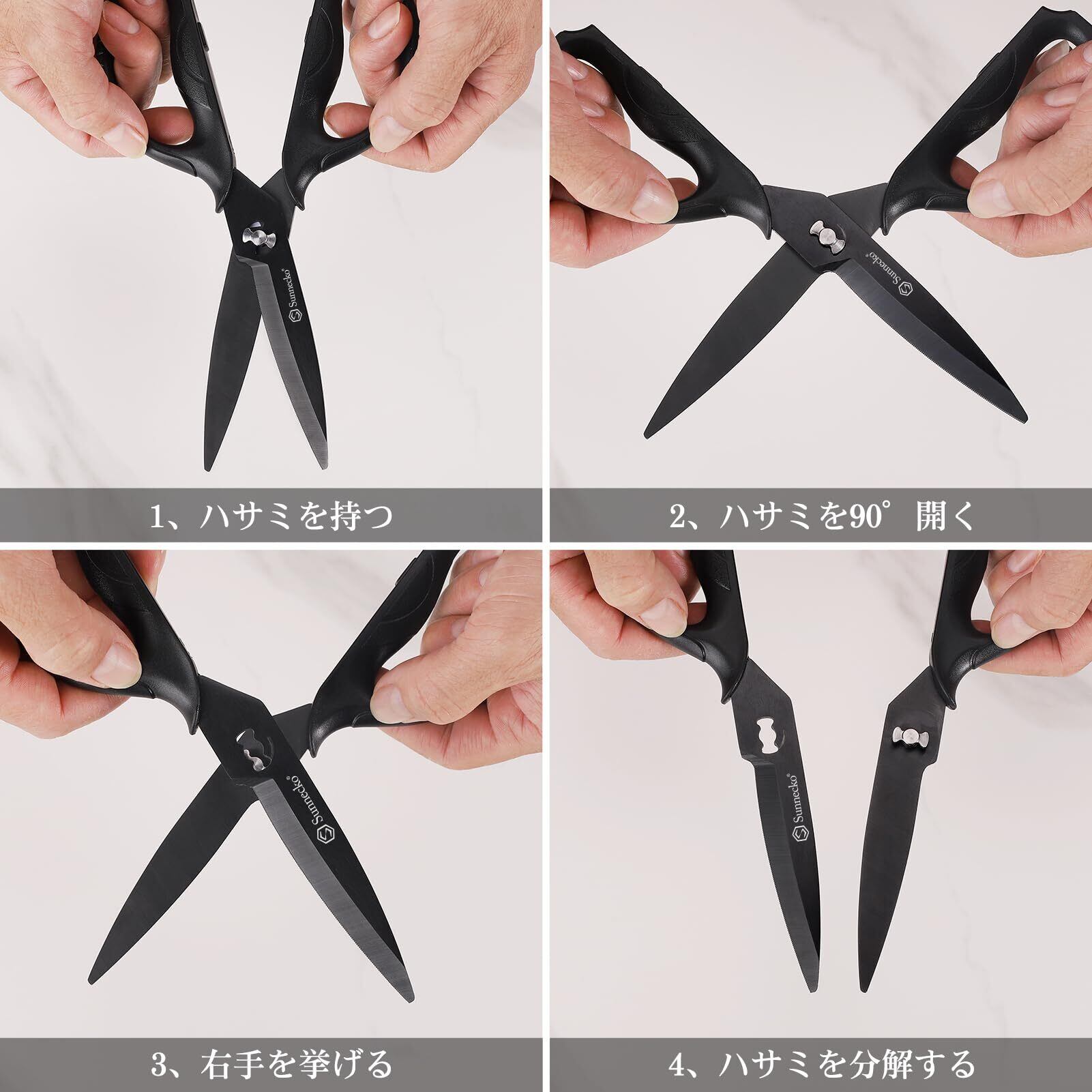 Sunnecko キッチンバサミ 料理はさみ キッチンハサミ 分解 食洗機対応 ステンレス チタンコーティング 黒