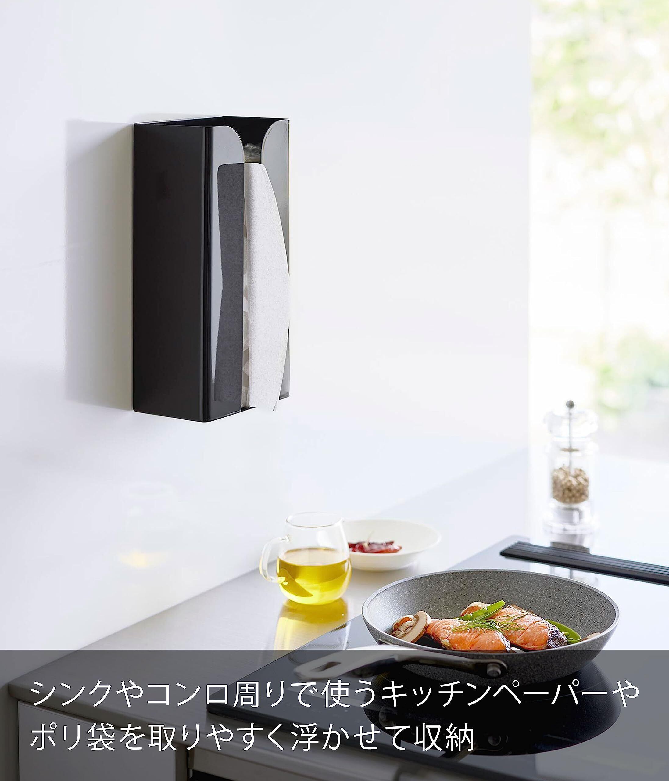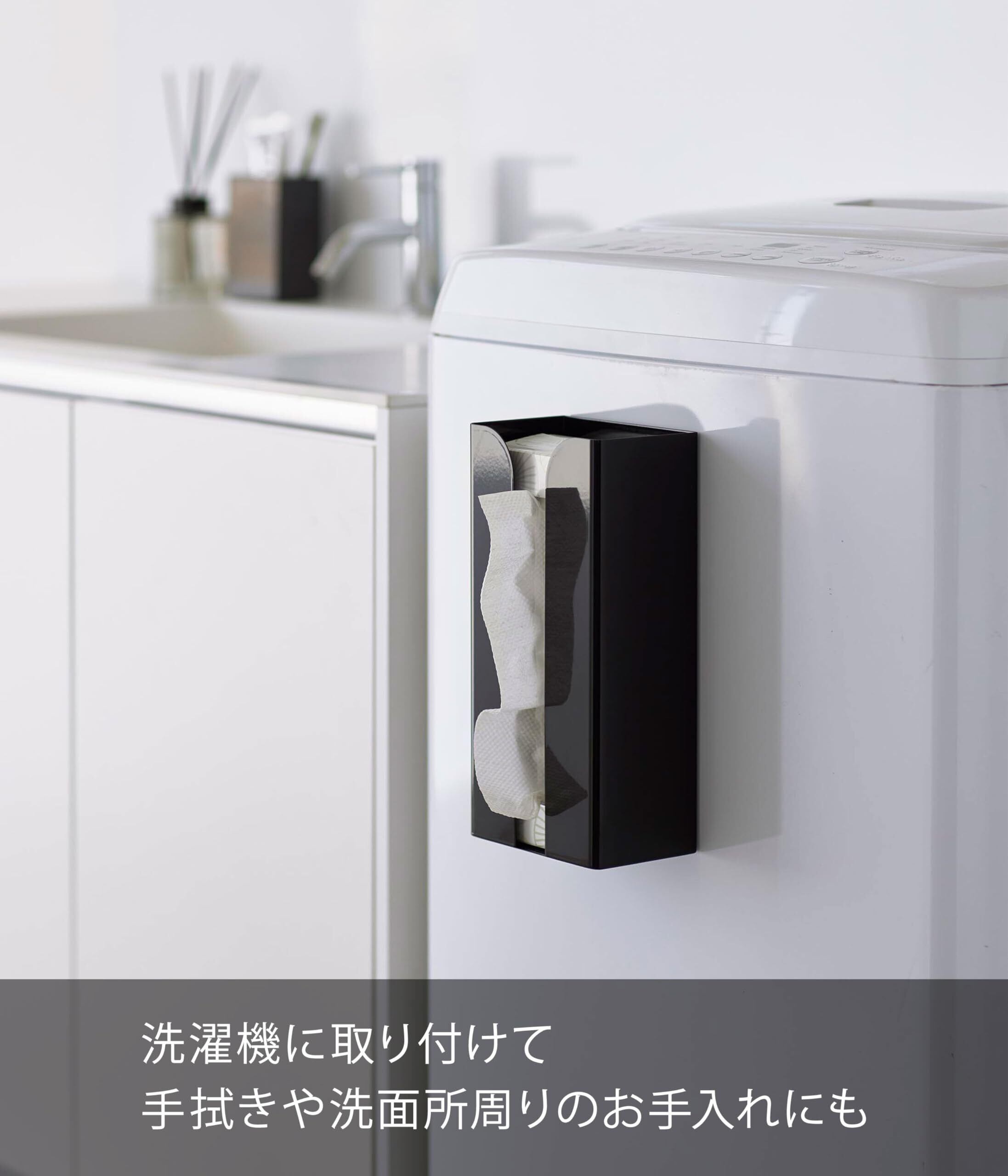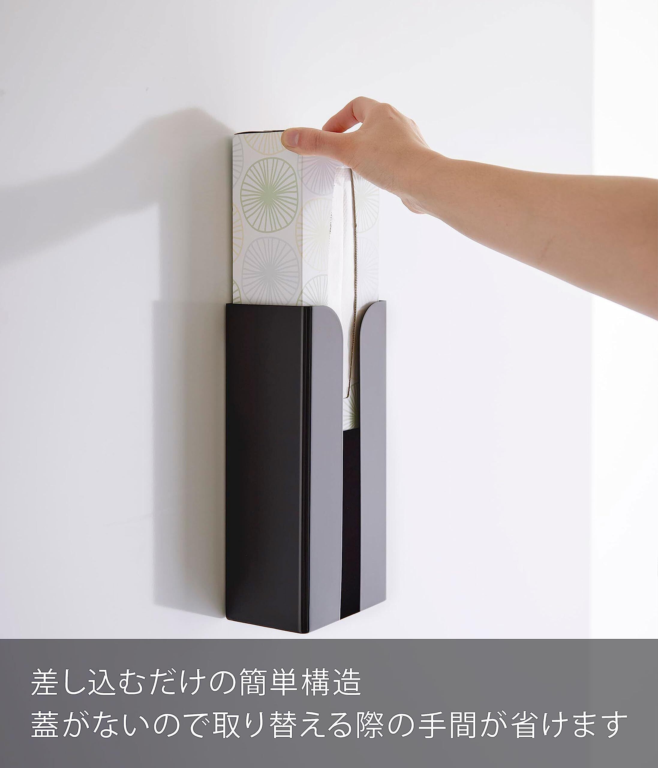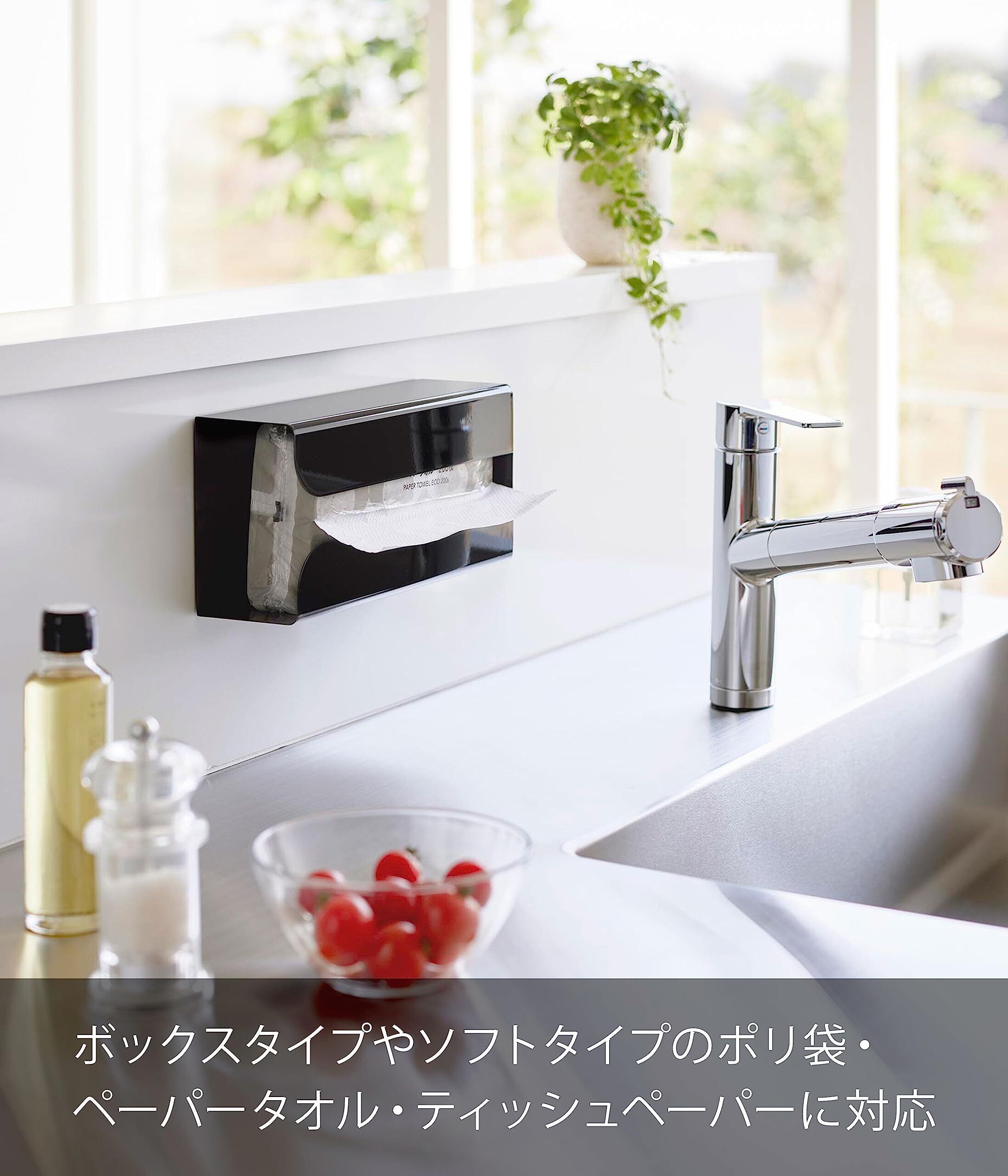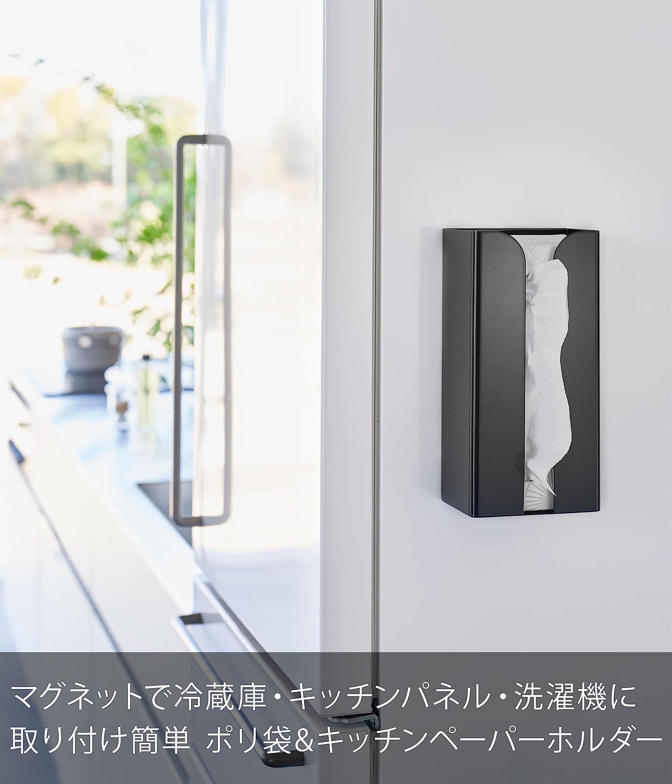 山崎実業(Yamazaki) マグネット ポリ袋 & キッチンペーパーホルダー ブラック 約W13×D8.3×H26cm タワー tower ティッシュケース ポリ袋ホルダー 簡単取付 3774 | kki
