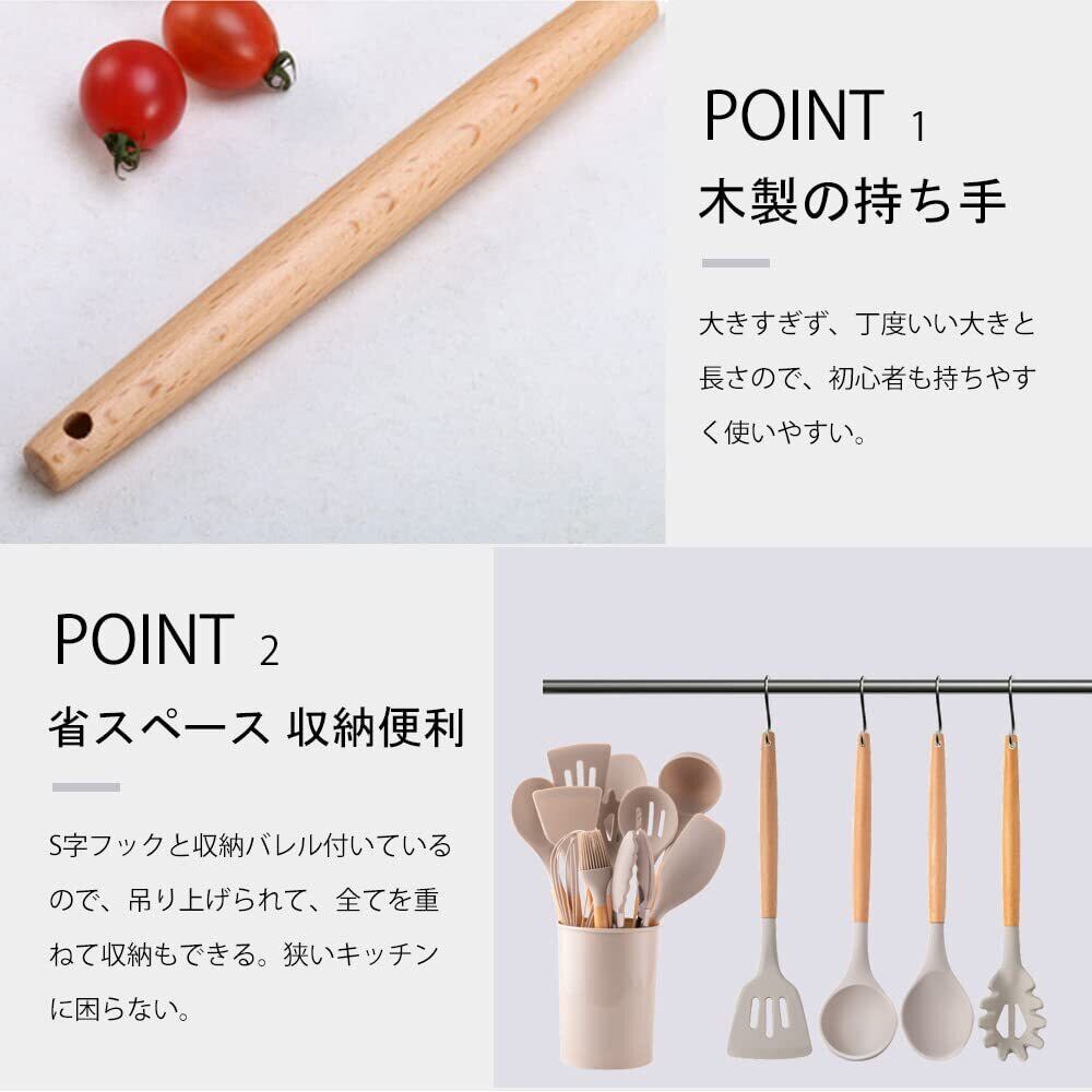 キッチンツール セット 調理器具 12点/9点セット 一人暮らし 台所用品 新居祝い 母の日プレゼント 耐熱 耐久性 木製ハンドル 和洋中料理に適用 抗菌 傷つかない フライ返し おたま トング スプーンなど オシャレ配色 (モカ, 12点セット) | kki
