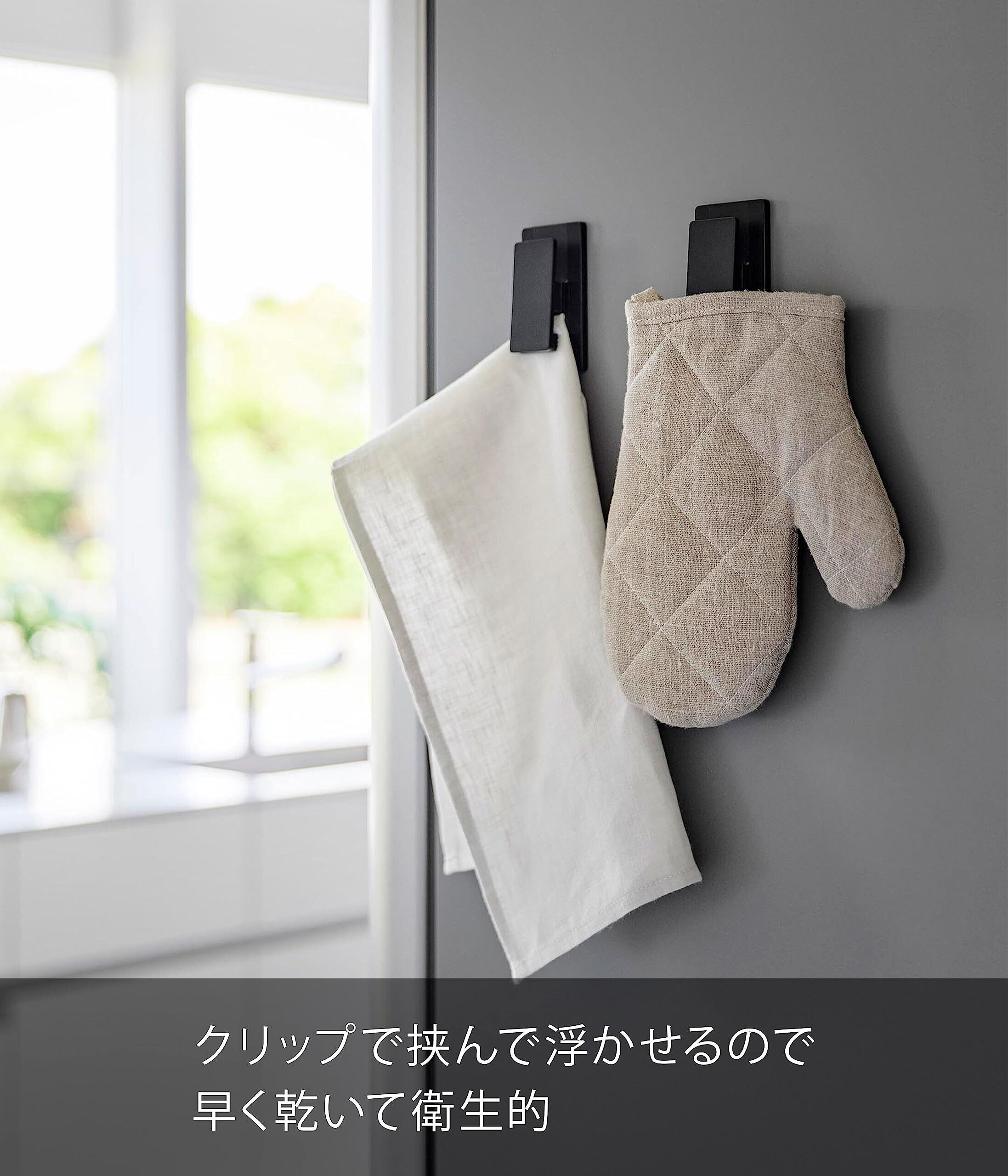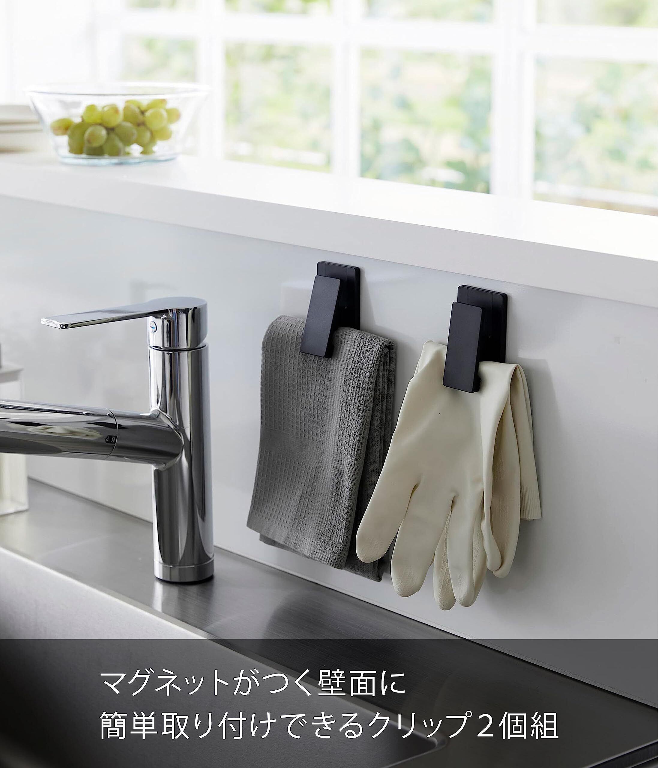 山崎実業(Yamazaki) マグネットクリップ 2個組 ブラック 約W4.5×D2×H8cm タワー tower 布巾かけ キッチン収納 簡単取付 3670