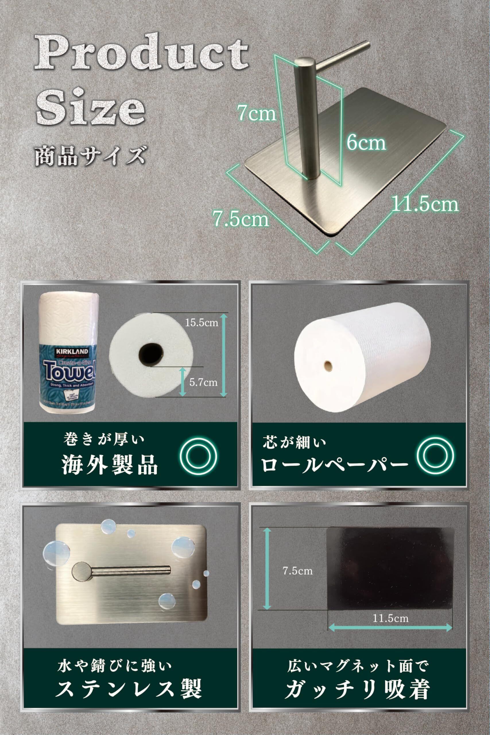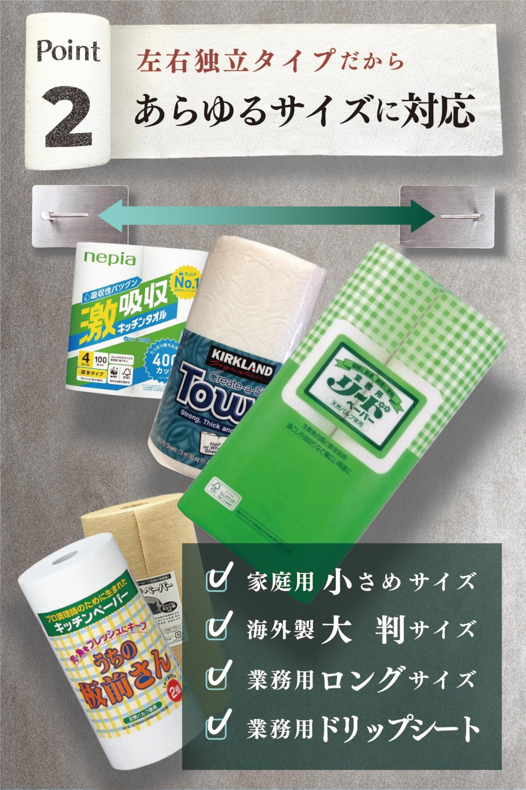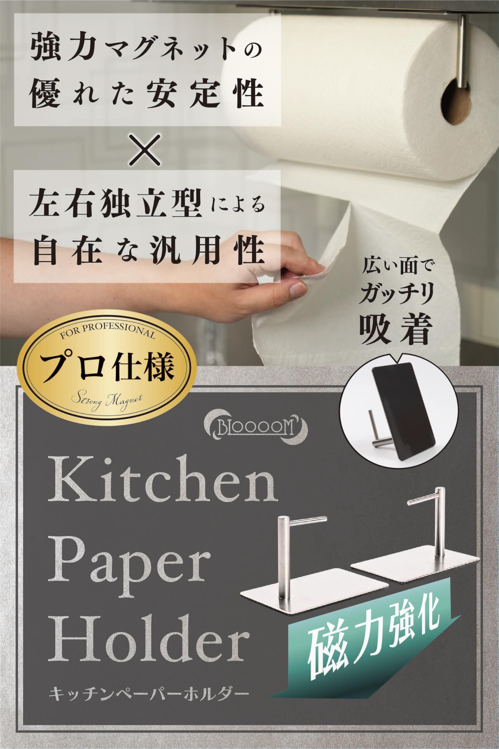 キッチンペーパーホルダー マグネット 片手で切れる 強力 海外製大判サイズ対応 業務用 ステンレス 冷蔵庫 万能 フック (ホワイト)