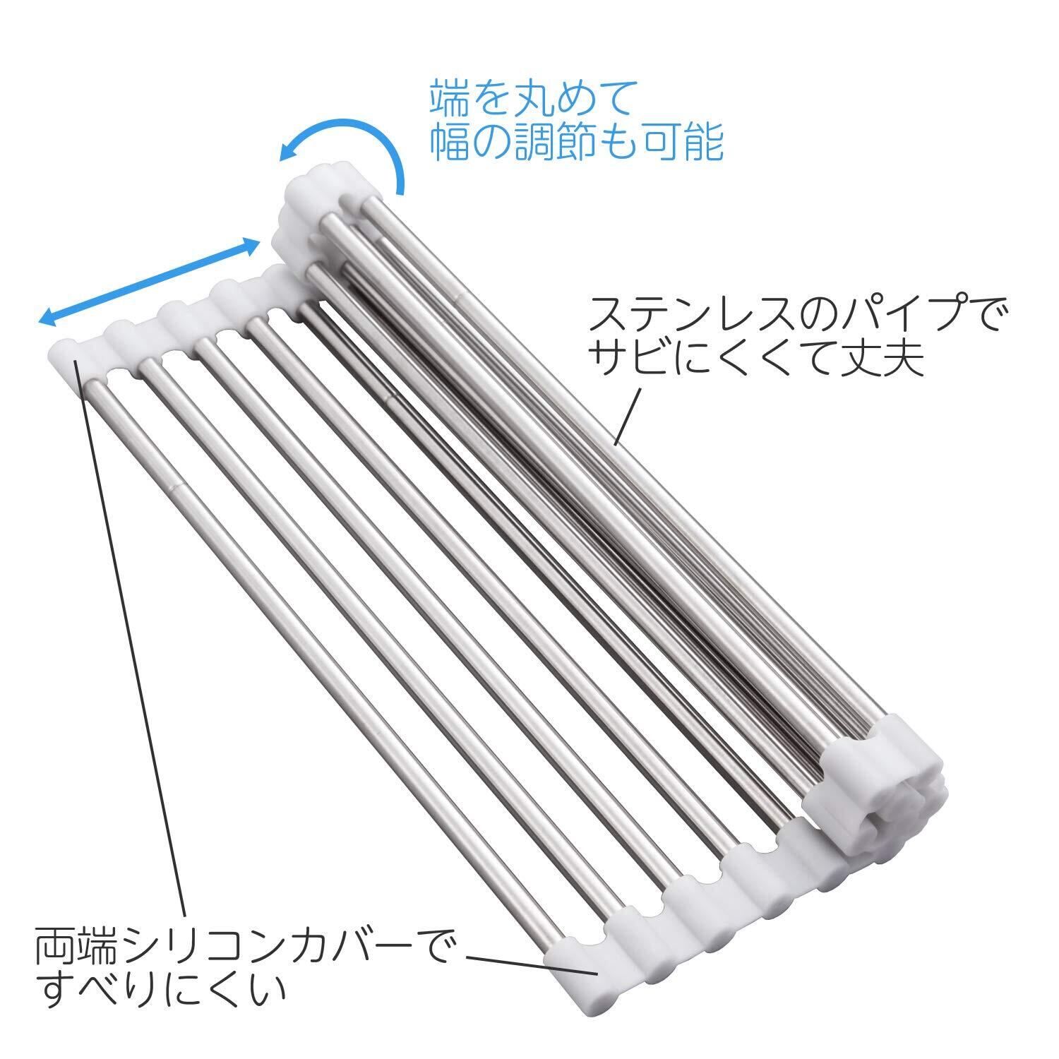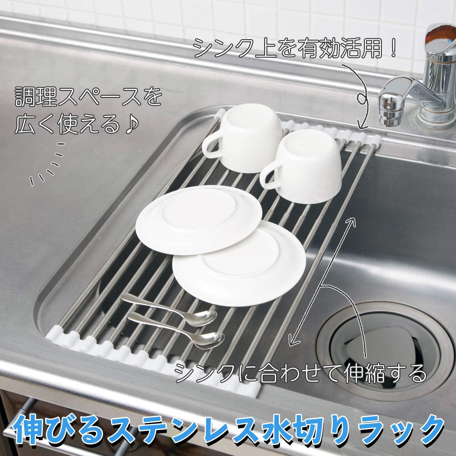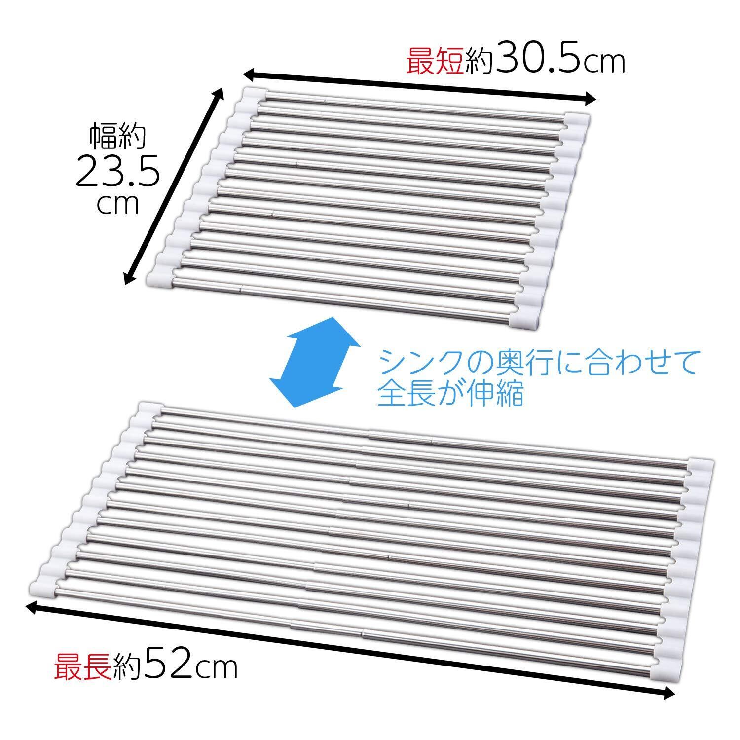 コモライフ(Comolife) 伸びるステンレス水切りラック 折りたたみ まな板受け 錆びにくい シンク キッチン 作業スペース 狭いキッチン 便利 52×23.5cm 耐荷重10kg