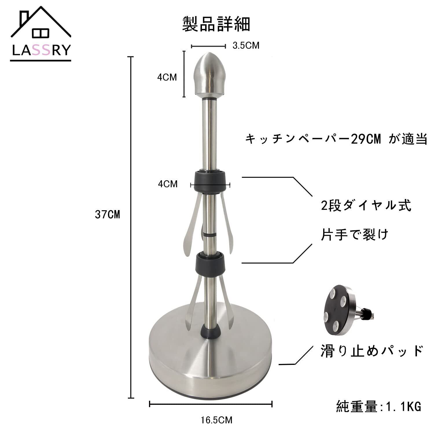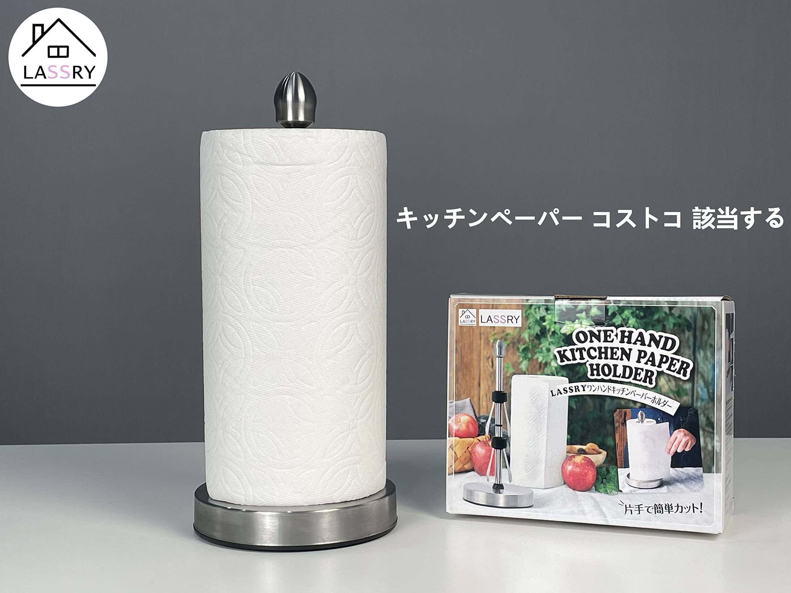 キッチンペーパースタンド ペーパースタンド 片手でとれる 吸盤付きキッチンペーパーロール ダンピング付きペーパースタンド (L, 銀)