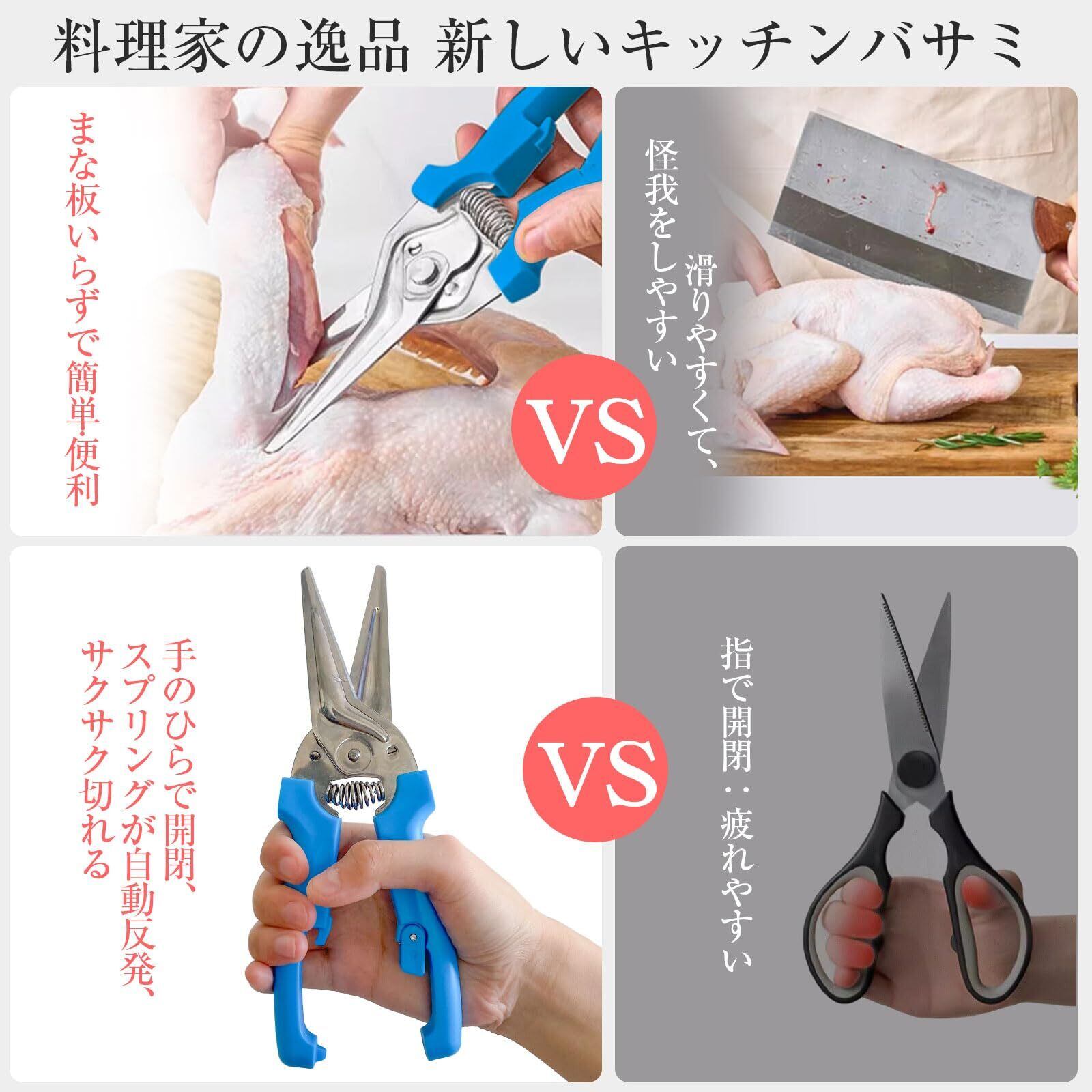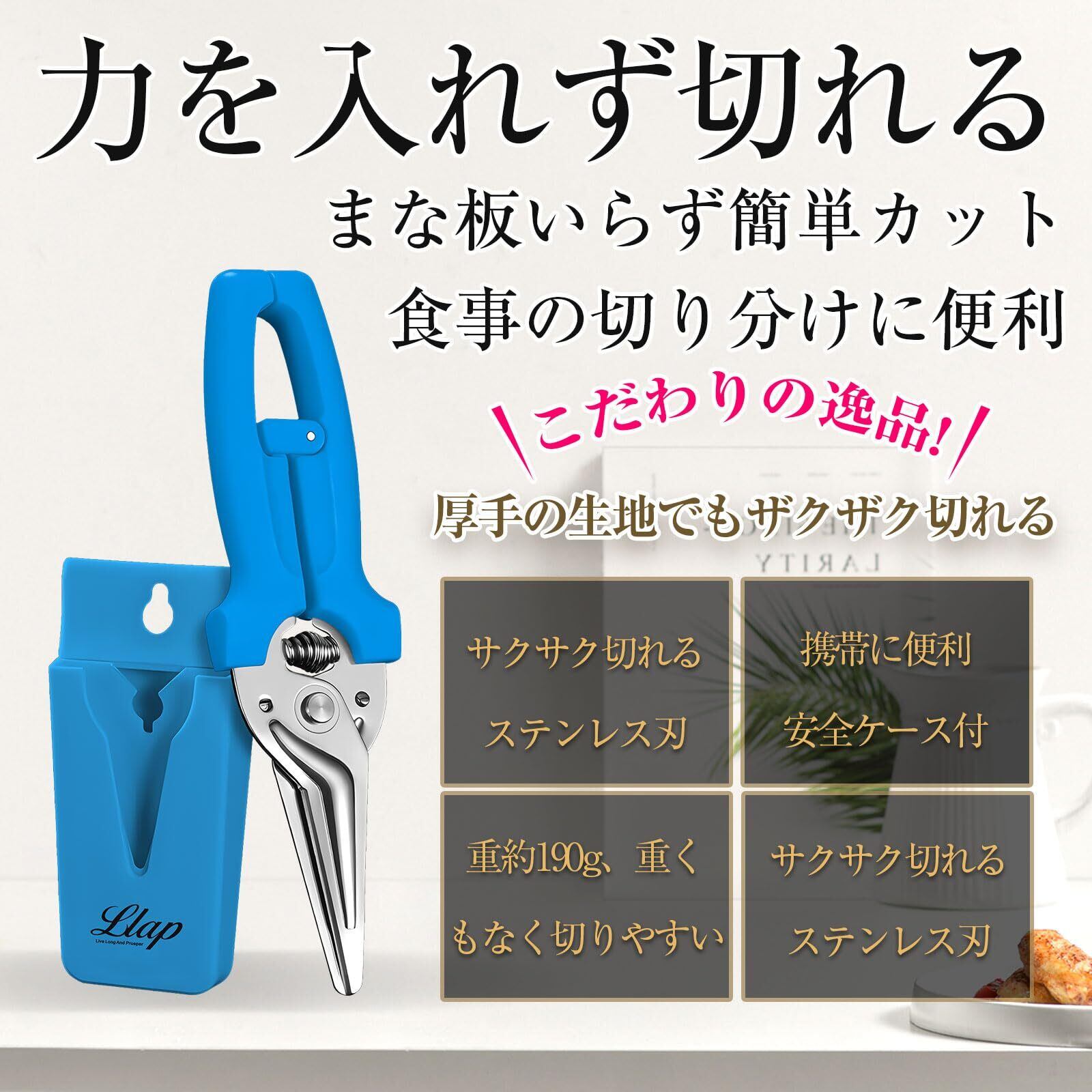 LLAP キッチンバサミ マルチハサミ 料理ばさみ カニ 鳥の骨 分解 食洗機対応 便利な調理グッズ 包丁とまな板不要 左右対称設計 サポートバネ付き 剪定 ばさみ 強力 はさみ