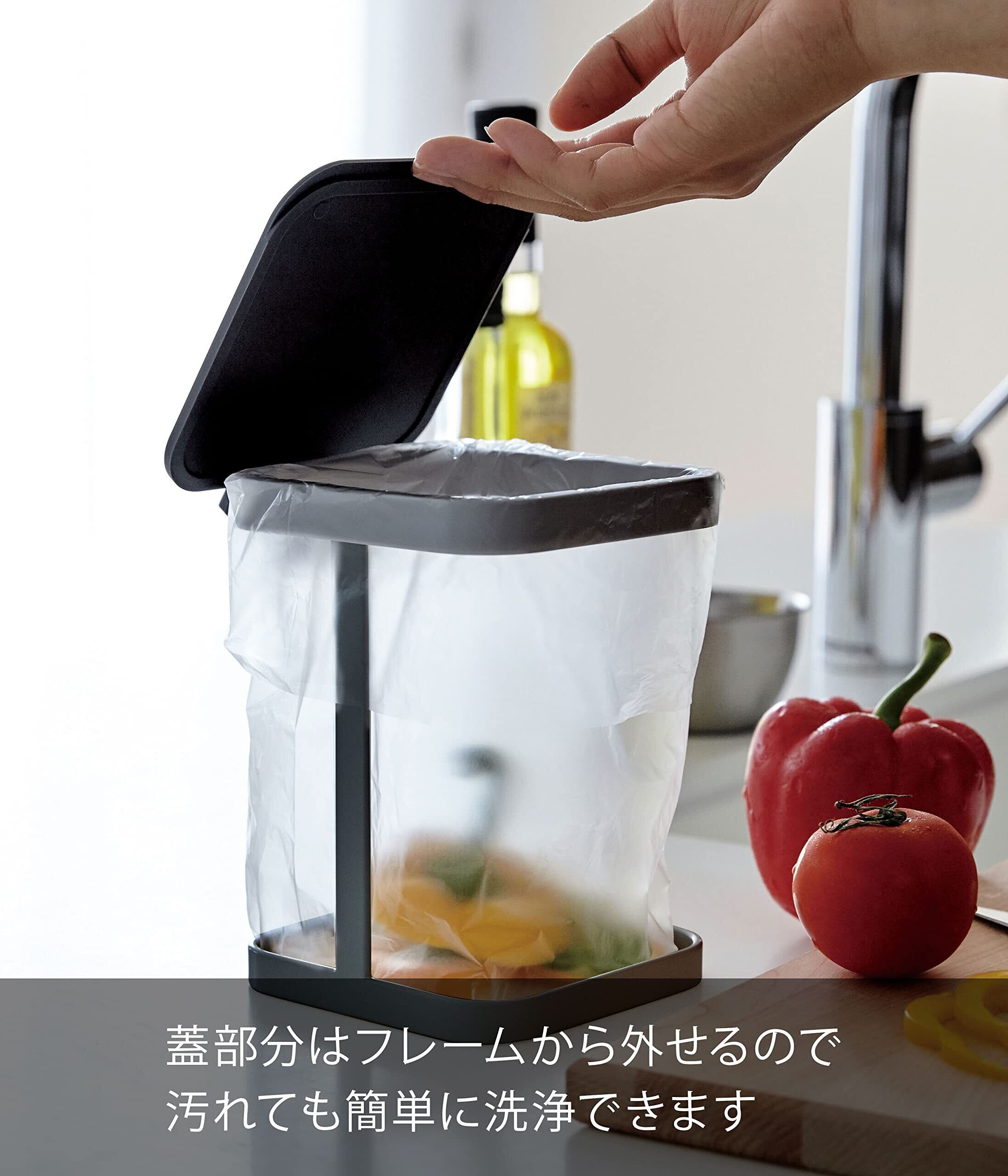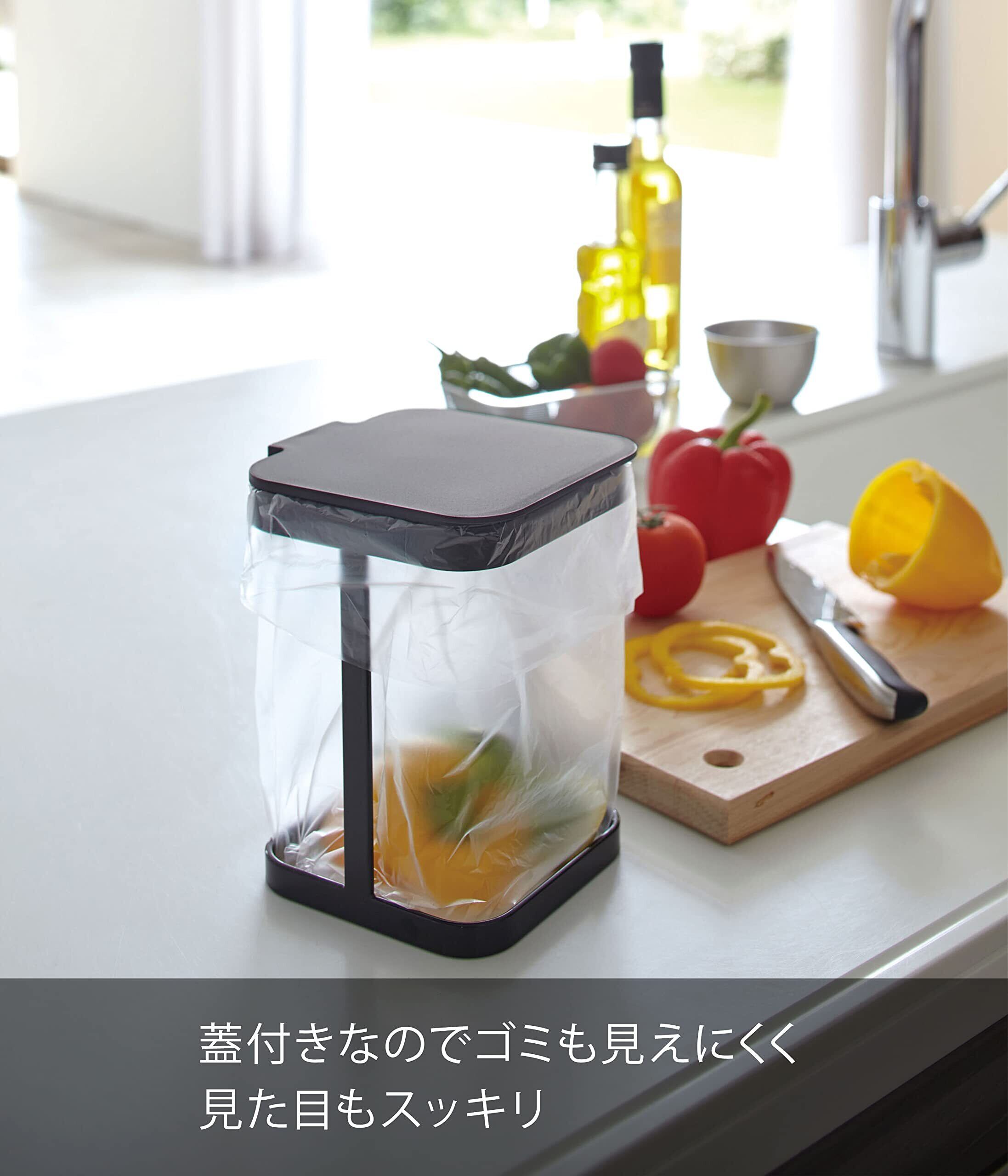 山崎実業(Yamazaki) ポリ袋エコホルダー 蓋付きポリ袋エコホルダー タワー ブラック 3331