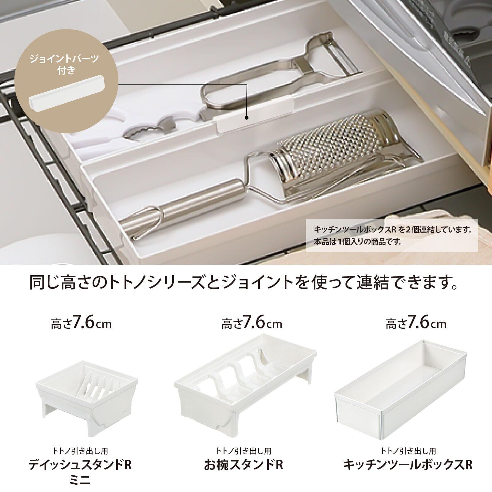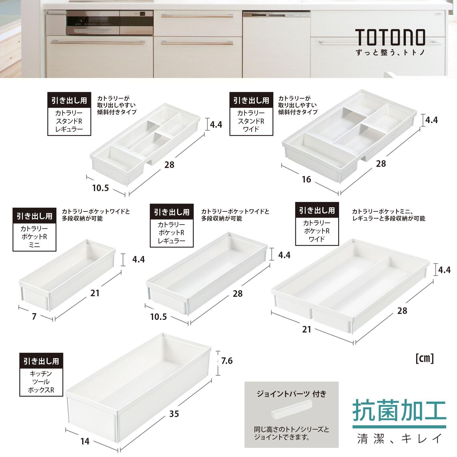 リッチェル TOTONO(トトノ) 収納トレー 引き出し用 キッチンツールボックスR ホワイト 日本製 食洗機対応 ジョイント付き 連結可能 使いやすい 便利 抗菌加工 おしゃれ シンプル ケース カトラリー 箸 スプーン ナイフ ボックス 110020 | kki