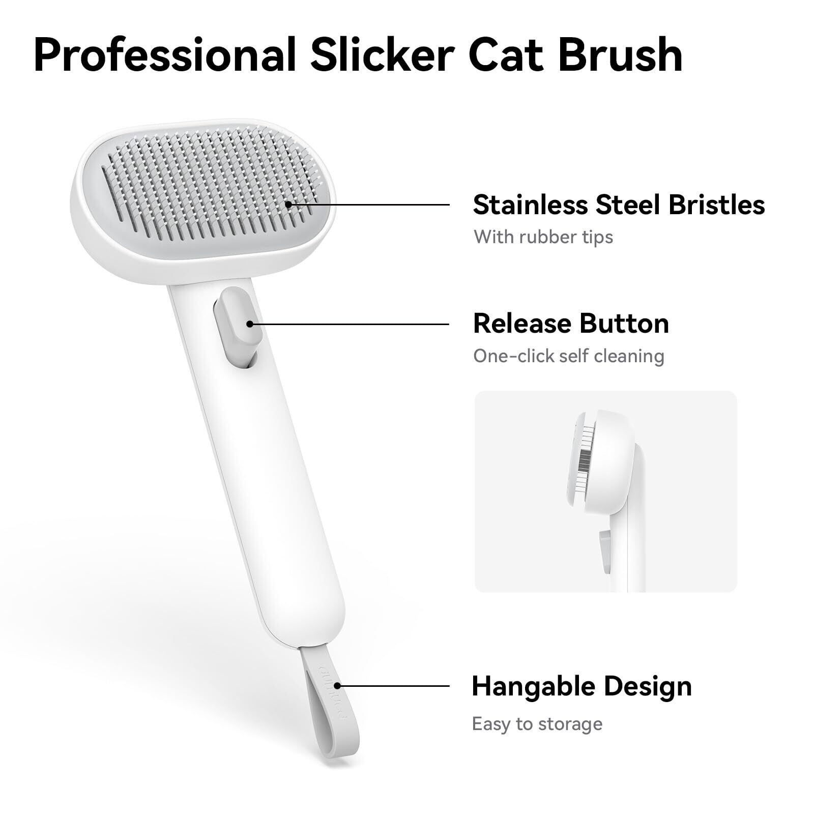 アウムカ (Aumuca) ペット用ブラシ「ワンプッシュ式」猫ブラシ 犬用ブラシ 猫 犬 抜け毛取り ブラシ マッサージ スリッカーブラシ ブラッシングブラシ 毛玉取りブラシ 犬猫通用 短毛 長毛 種向け ブラシセット 丸洗い可能 皮膚に優しいブラシ BabyPets JPメーカー (ホワイト) | kki