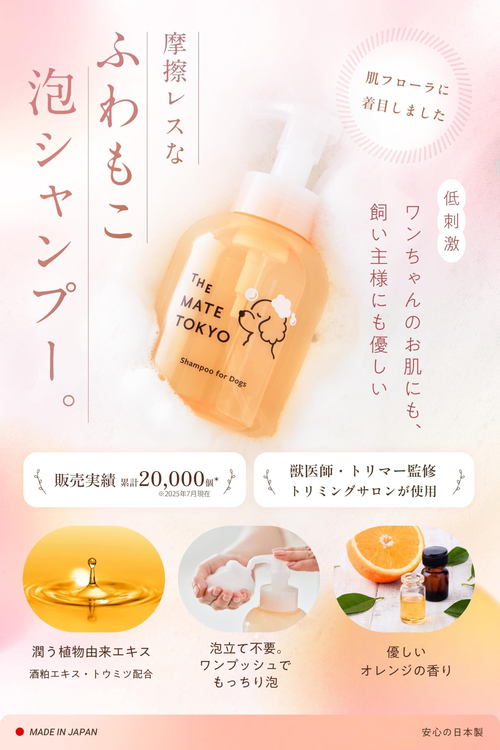[獣医師・トリマー監修] [泡で出る× 無添加 ] 犬 シャンプー 犬用 低刺激 日本製 大容量 460ml THE MATE TOKYO (シャンプー1個)