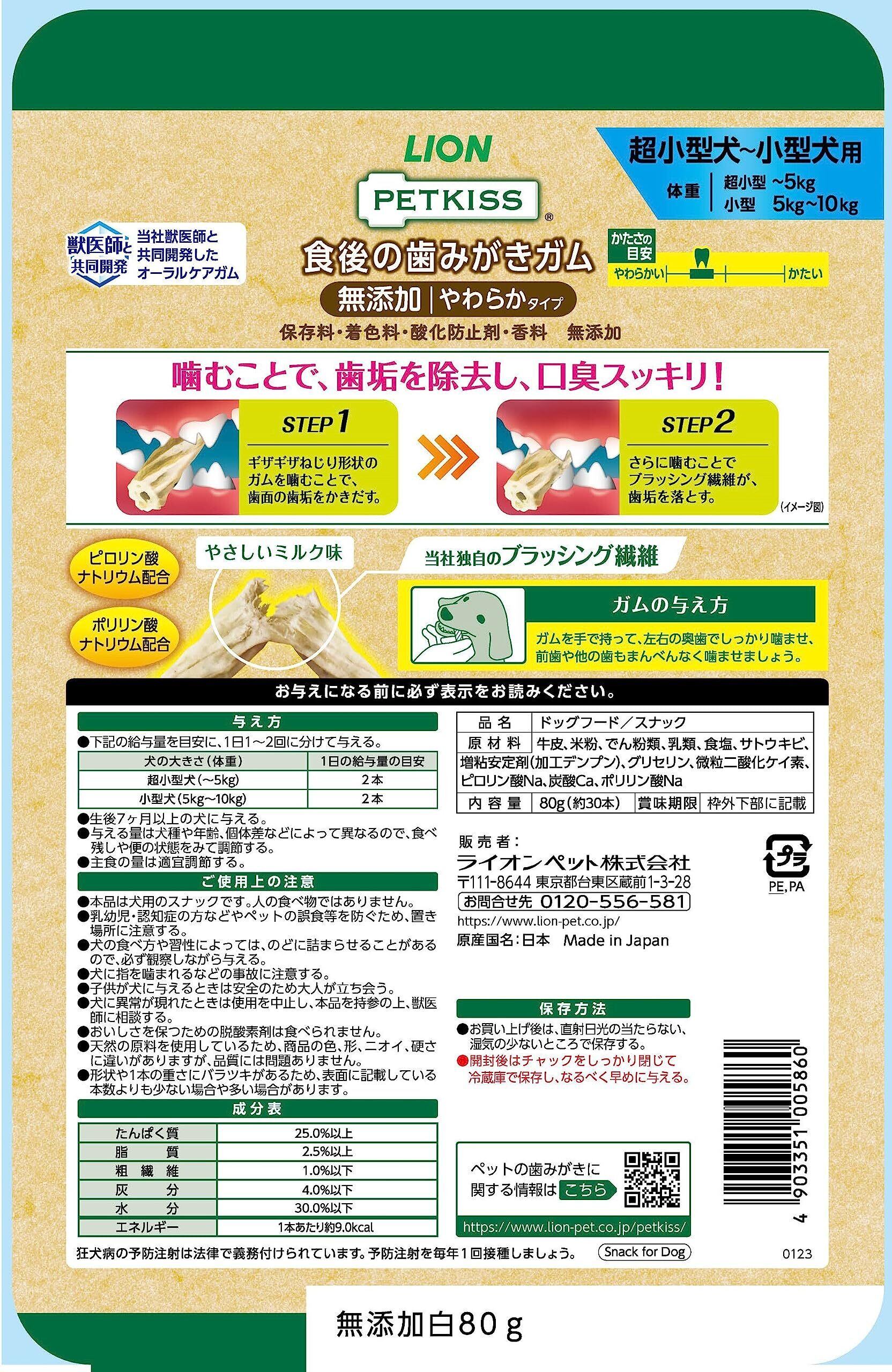 ライオン ペットキッス PETKISS 犬用おやつ 食後の歯みがきガム 無添加 やわらかタイプ 超小型犬~小型犬用 LIONPET