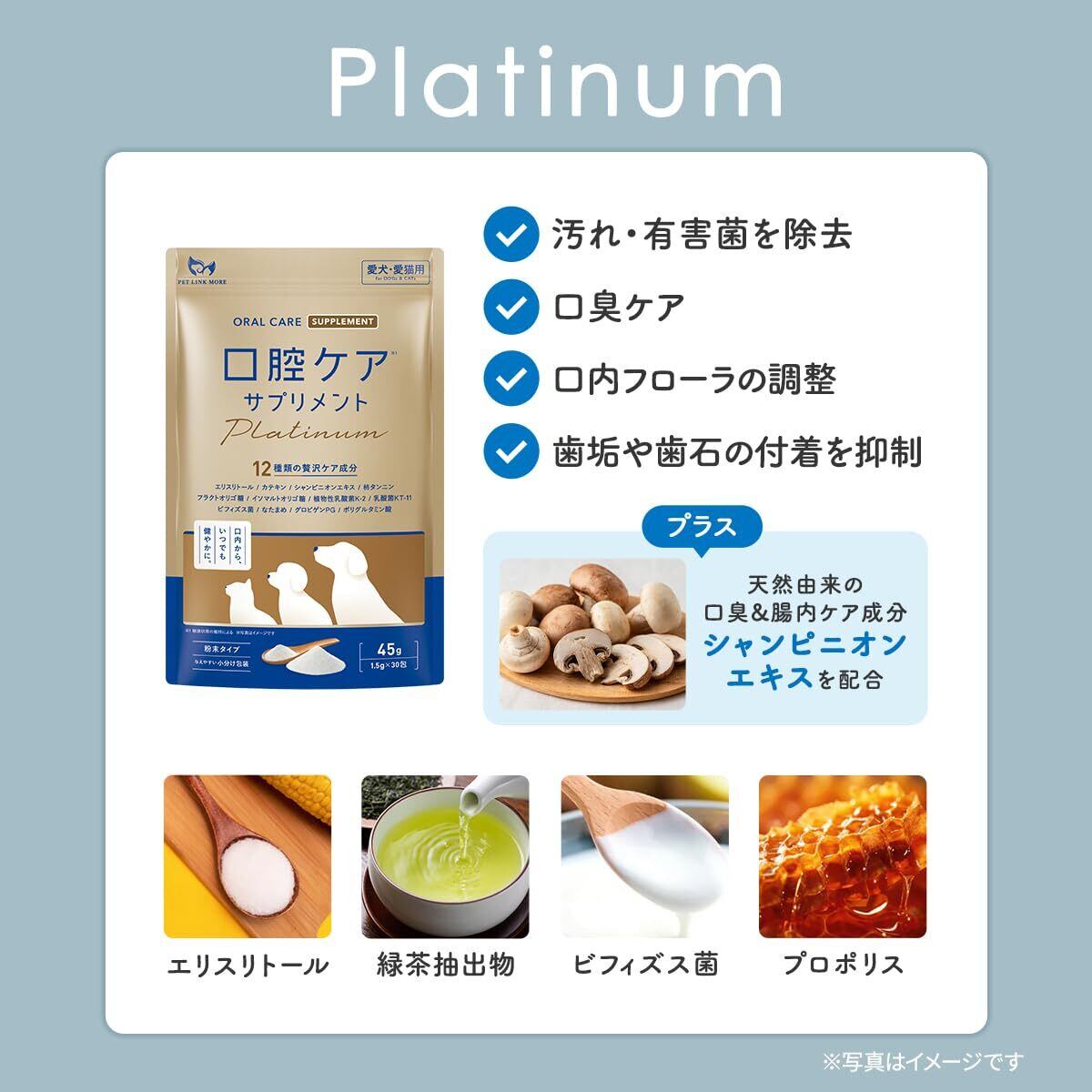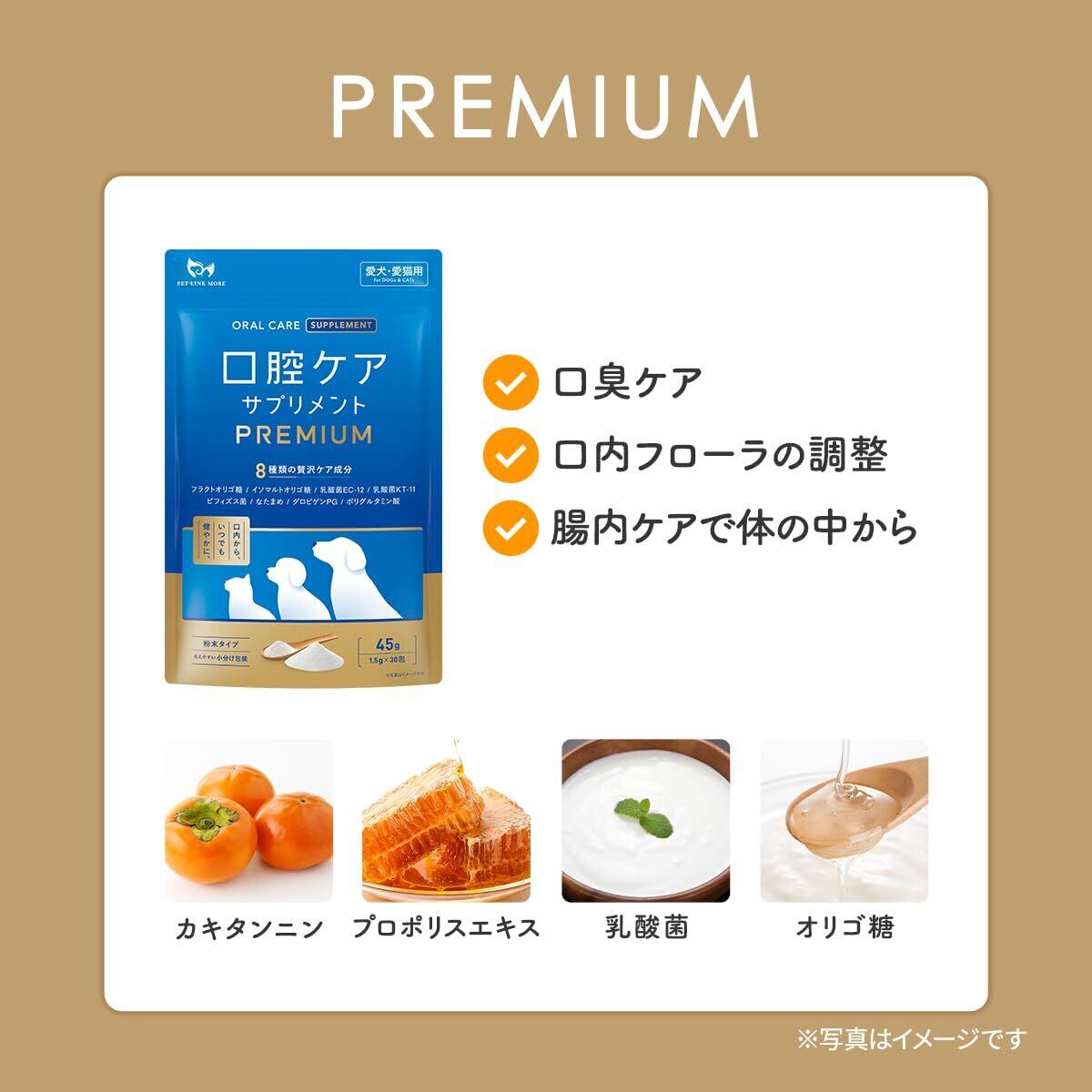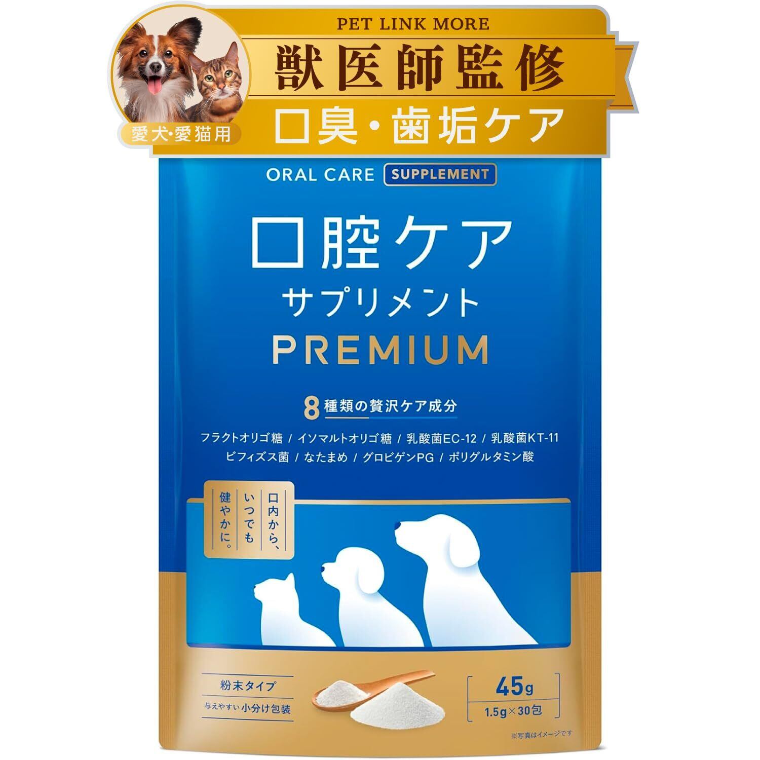 PETLINKMORE 犬猫用 口腔ケアサプリ PREMIUM プレーン味 【獣医師監修】 歯磨き ふりかけ 歯磨き粉 口臭 歯石 歯垢 除去 デンタルケア 国内製造 デンタルパウダー オーラルケア 歯周病分包 45g 1.5g×30包 (粉末 単品) | kki