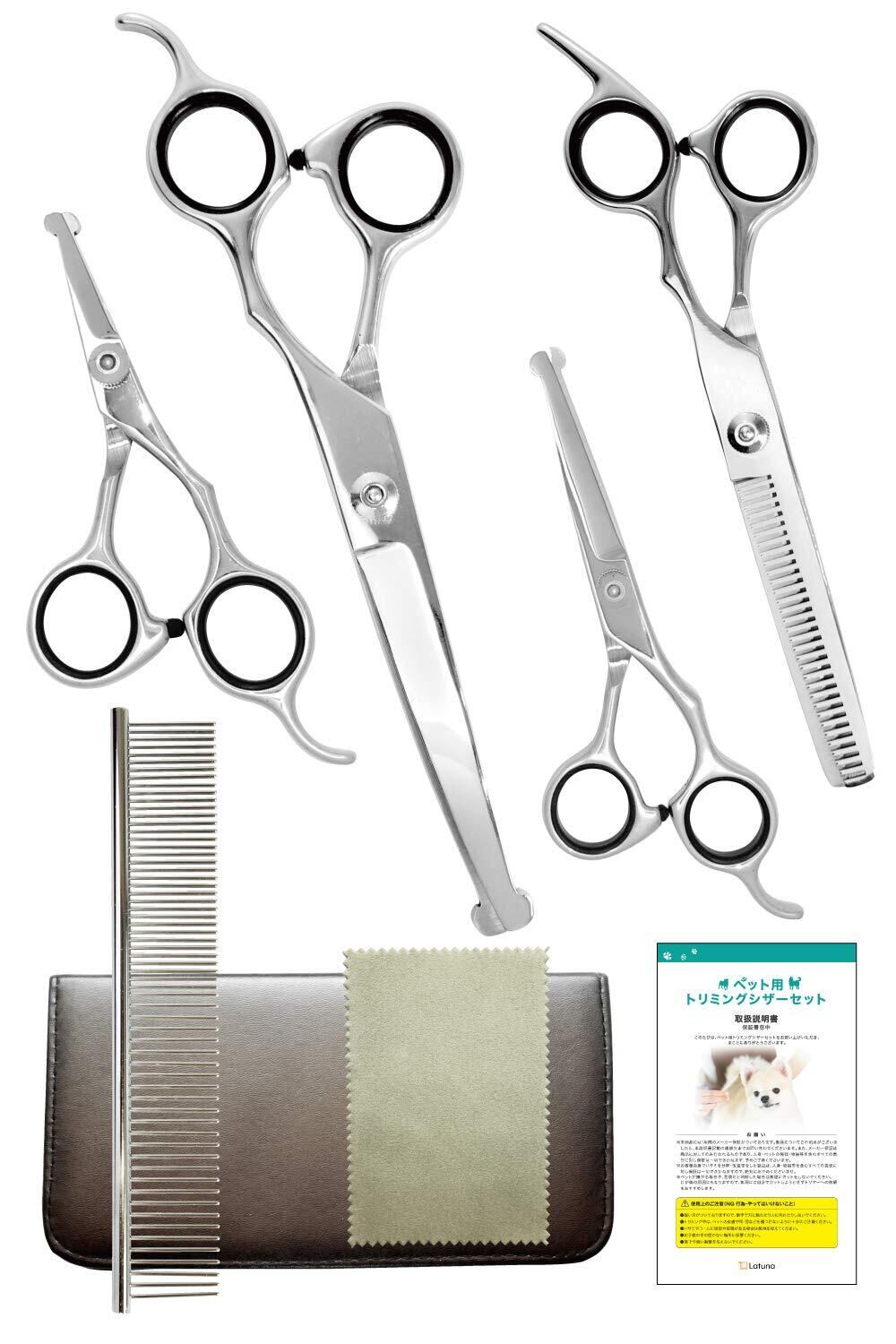 [Latuna] トリミングシザー ハサミ 7点セット [プロトリマー監修] 使い方説明動画付き 犬 トリミング ペット用 初心者向け 安全性 ケース付き セニング すきばさみ ボブ カット カーブ (7点セット) | kki