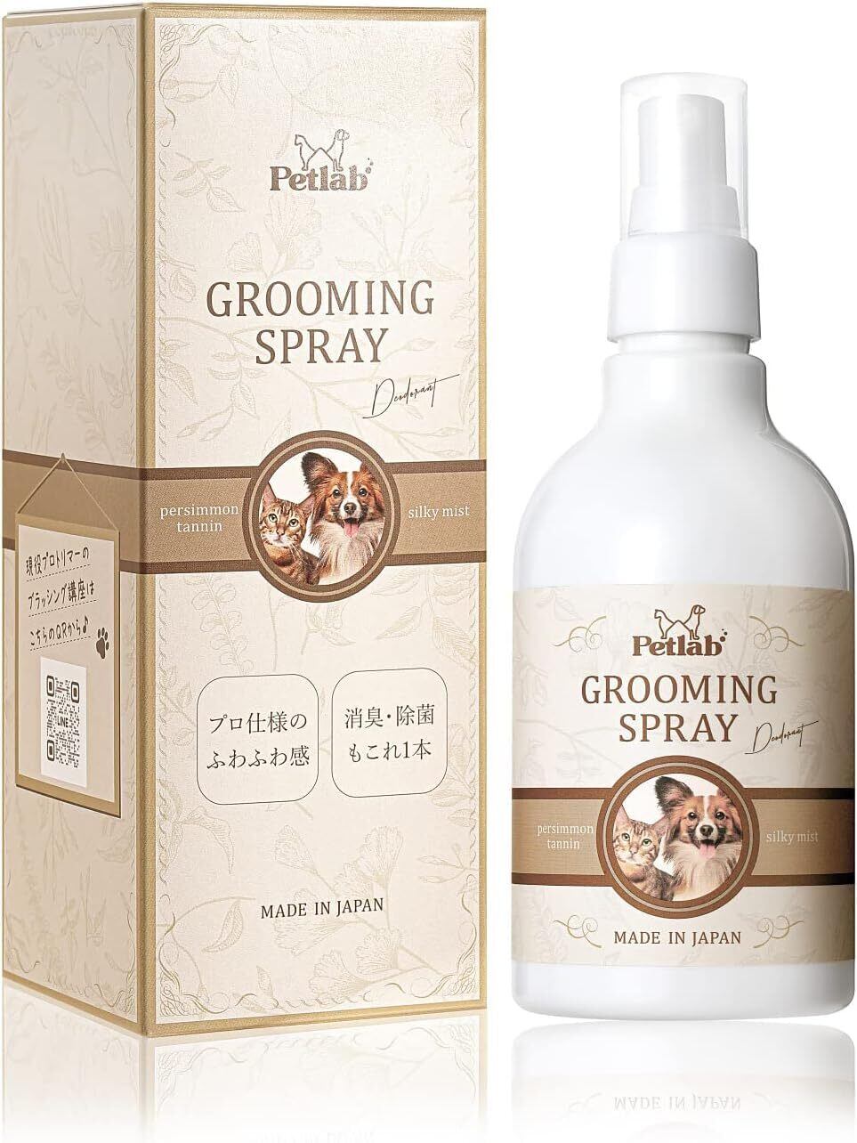 [セット品] 【動物看護士×トリミングサロンが共同開発】 犬猫兼用グルーミングスプレー 天然成分100% 無臭ブラッシングスプレー ペット用ドライシャンプー 保湿 消臭 除菌 300mL (2本セット) | kki