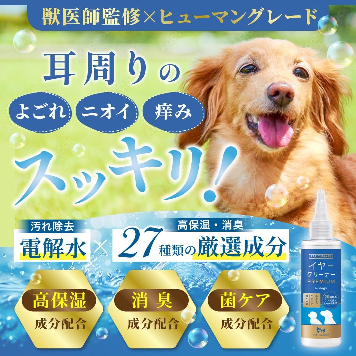 PETLINKMORE 【獣医師監修】イヤークリーナー PREMIUM 犬 ペット 耳掃除 洗浄液 消臭 除菌 耳のケア 低刺激 国内製造 120ml (単品)